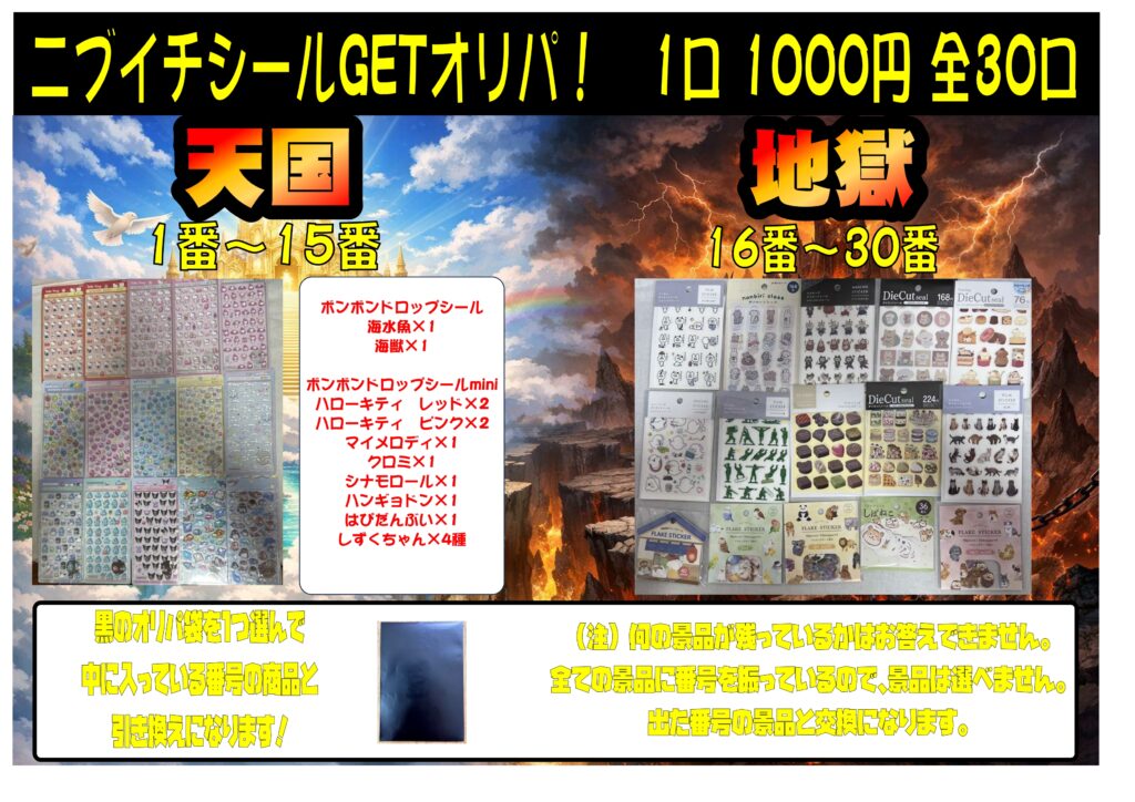 ニブイチシールGETオリパ販売開始!色々...