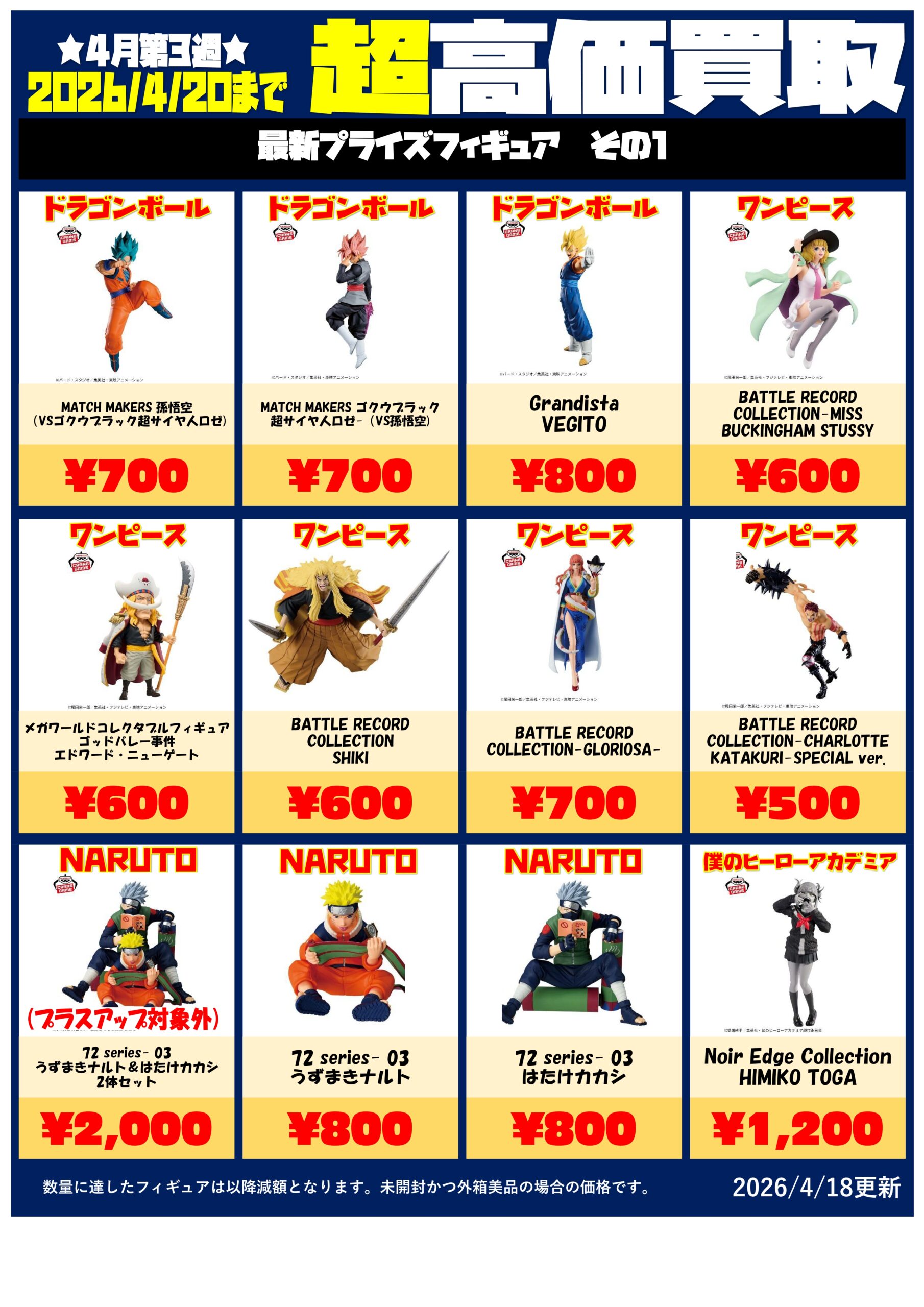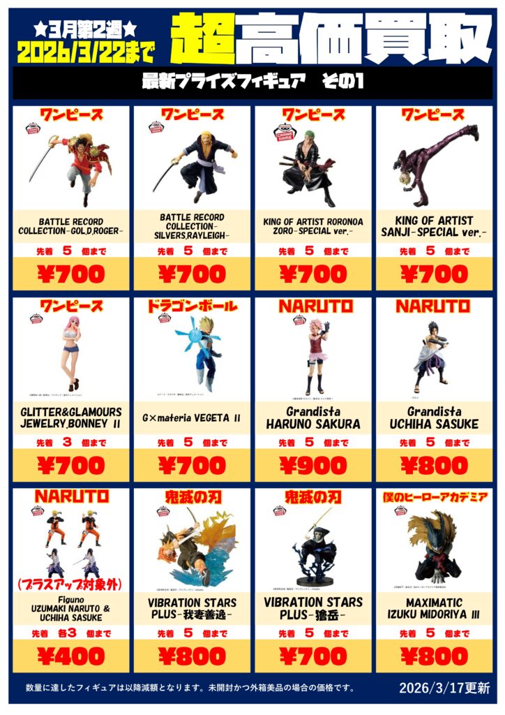 最新プライズフィギュア買取チラシ更新しま...