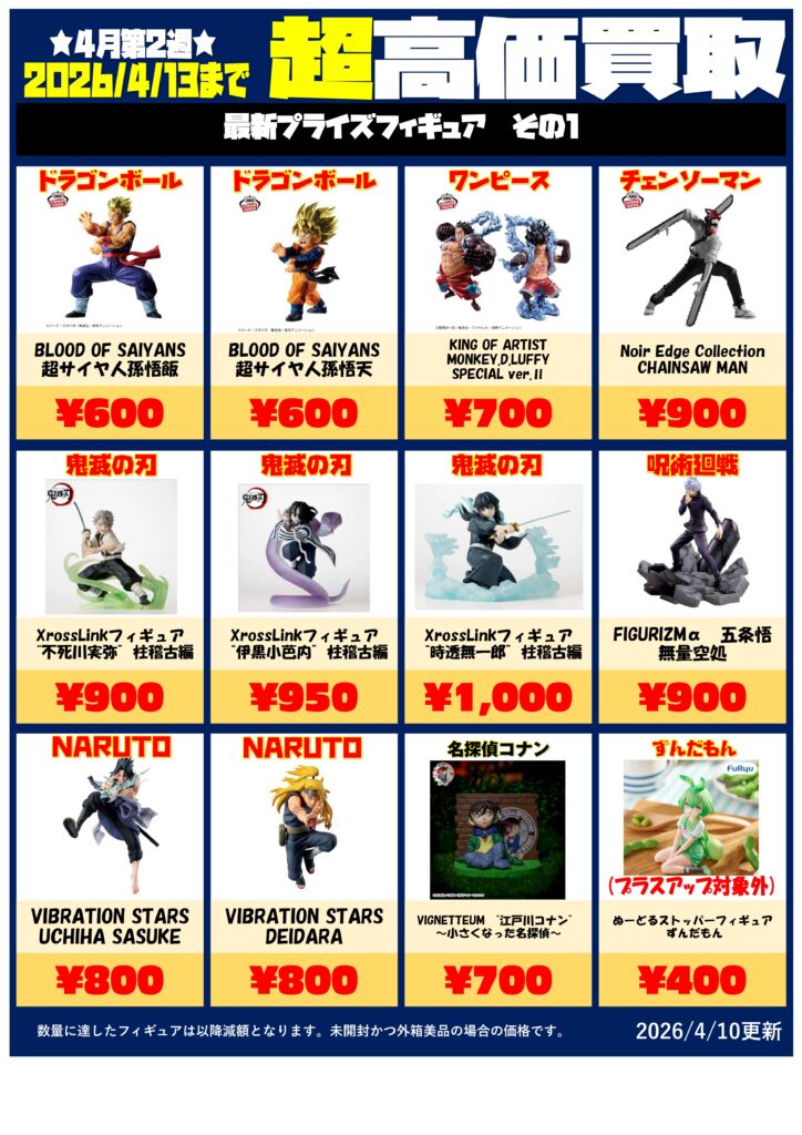 プライズフィギュア買取チラシ更新しました...
