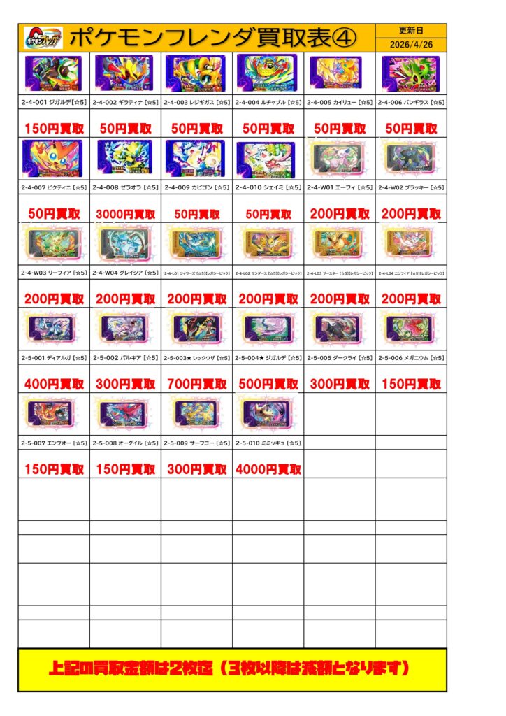 ポケモンフレンダ買取チラシ更新しました!...