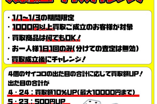 【正月イベント】最大10000円UP!?1/1~1/3の期間限定で買取額UPダイスチャレンジ開催!