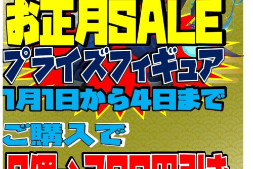 【お正月イベント】1/1~1/3の期間限定!プライズフィギュア2個購入で300円・3個購入で500円引きセール開催!