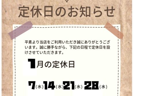 【重要】1月の定休日のお知らせ
