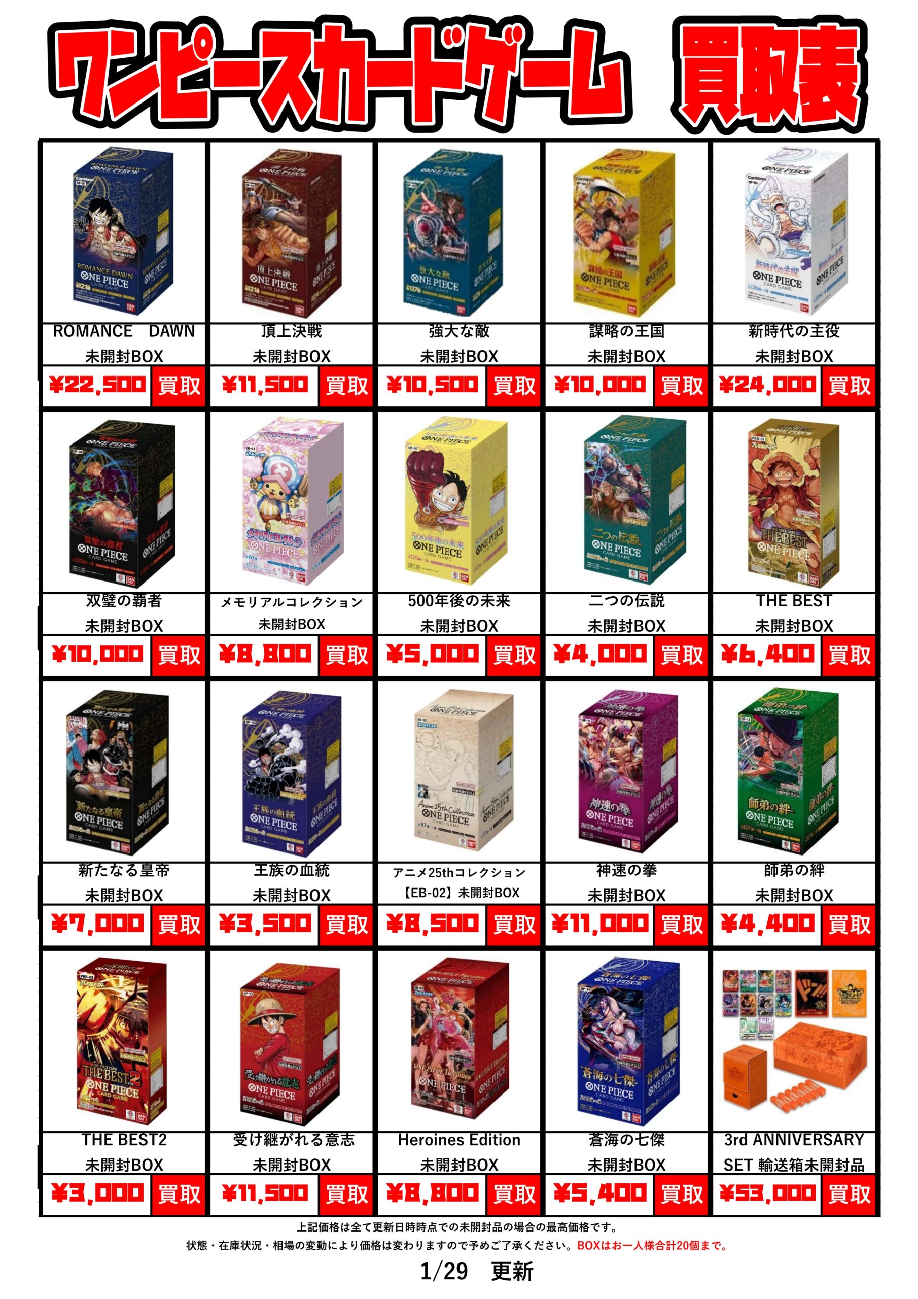 ワンピースカード未開封BOX買取チラシ更新しました!