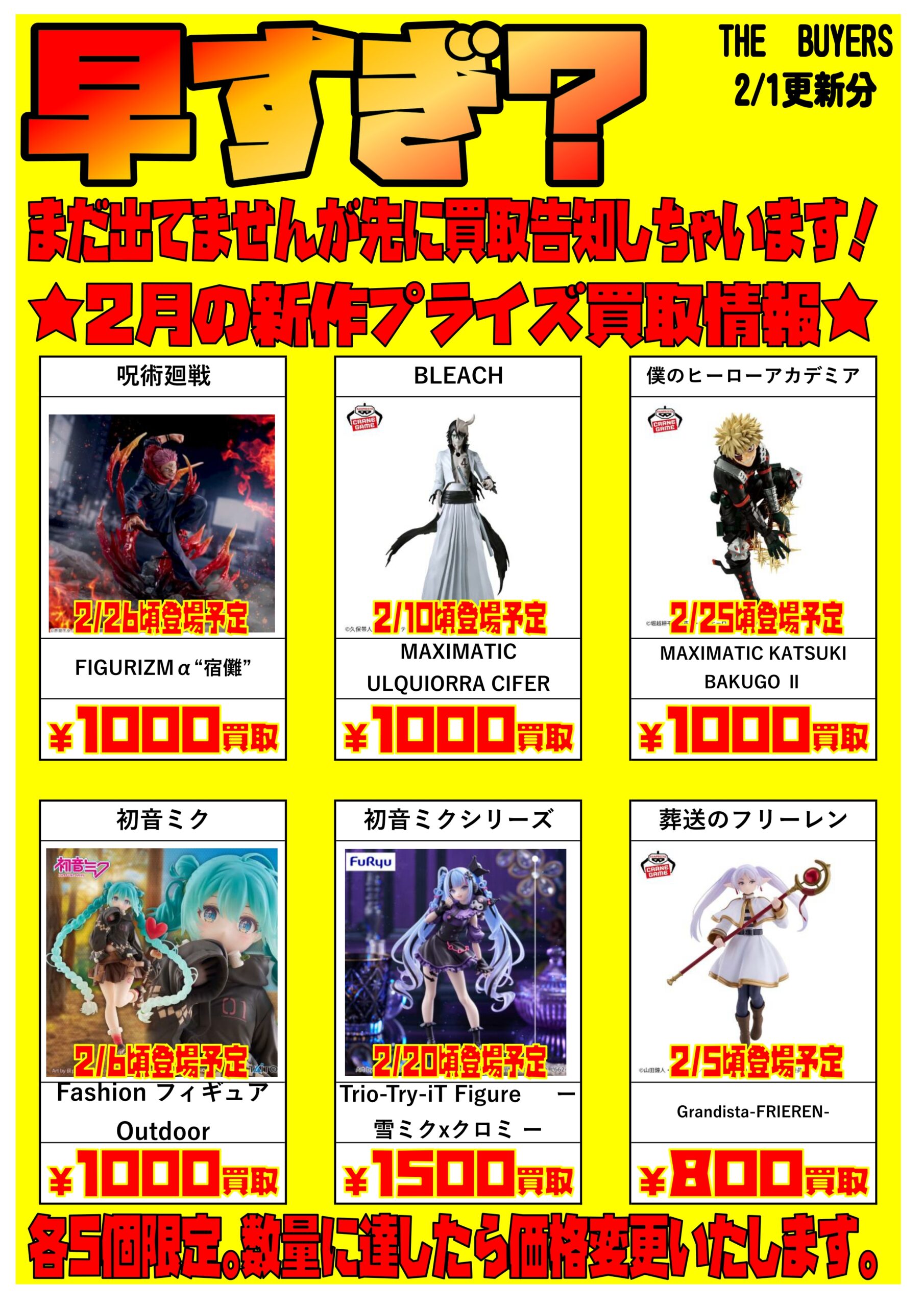 まだだいぶ早いけど欲しいプライズフィギュア買取告知しちゃってます2月ver!