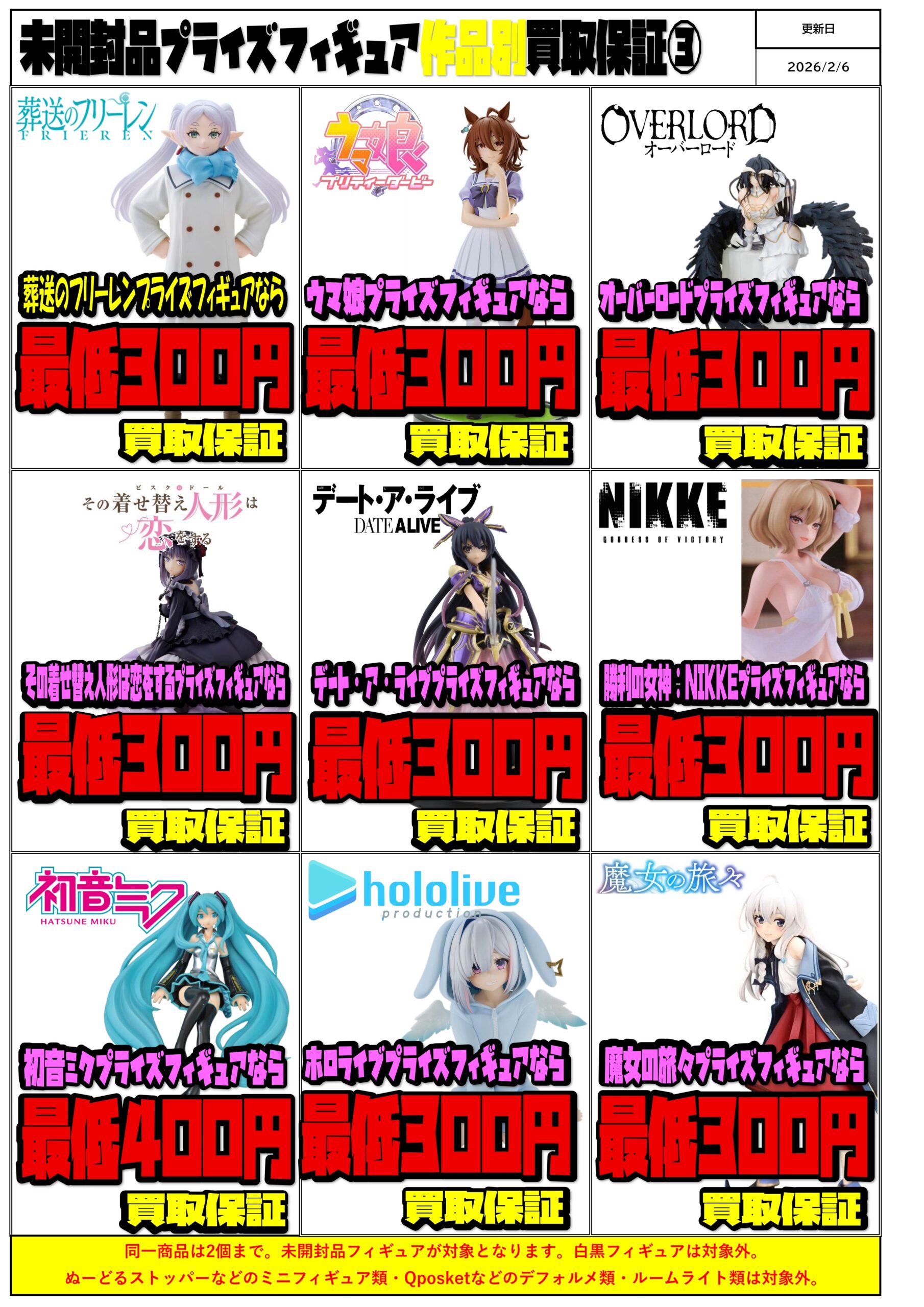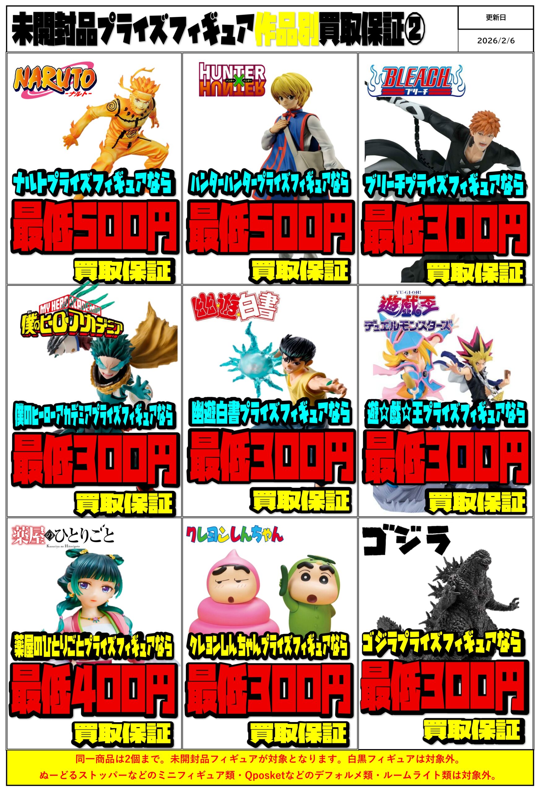 未開封プライズフィギュア買取保証チラシ更新しました!