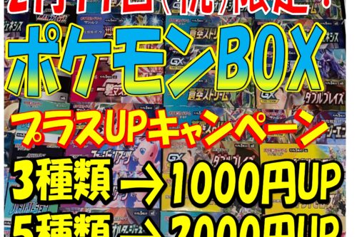 明日11日(水)限定でポケモンカード未開封BOXのプラスアップキャンペーン開催!普段は定休日の水曜だけど祝日なのでお店オープンします!