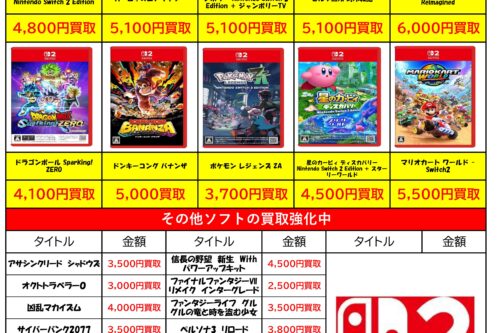Switch2ソフト買取チラシ更新しました!