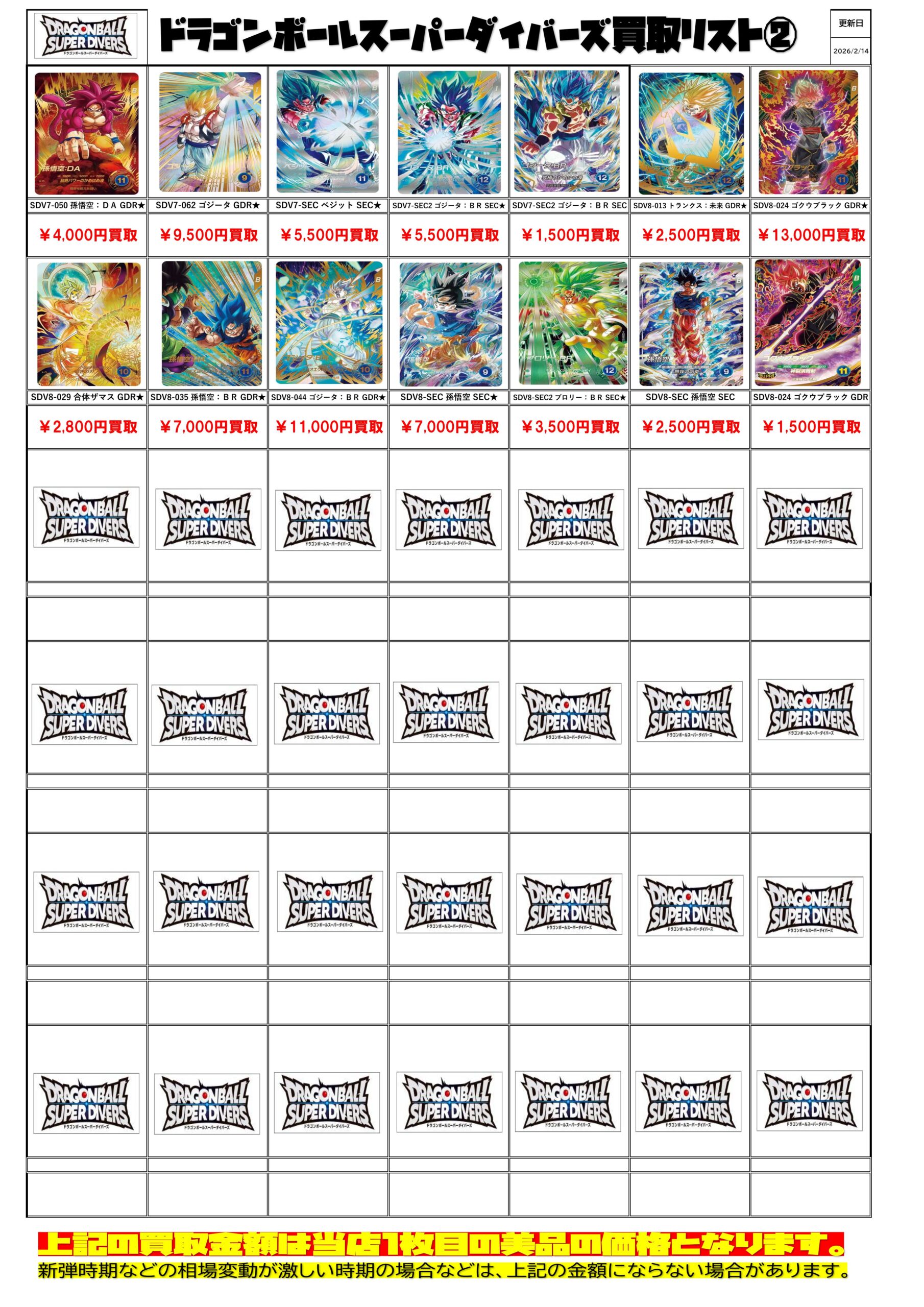 ドラゴンボール スーパーダイバーズ買取チラシ更新しました!