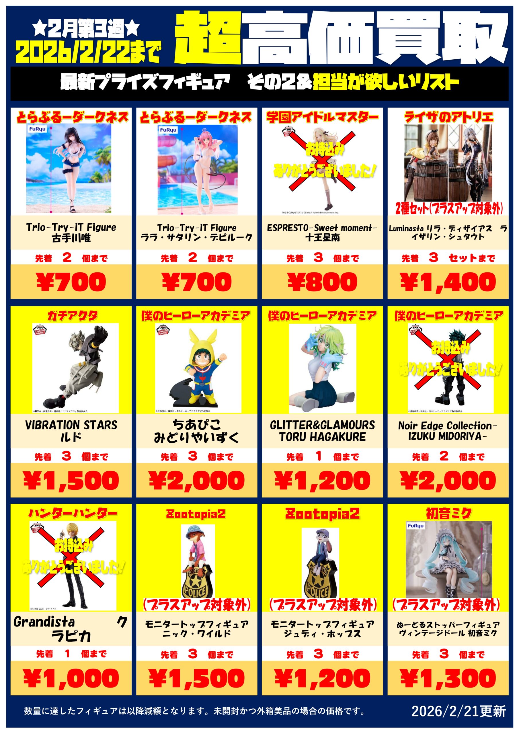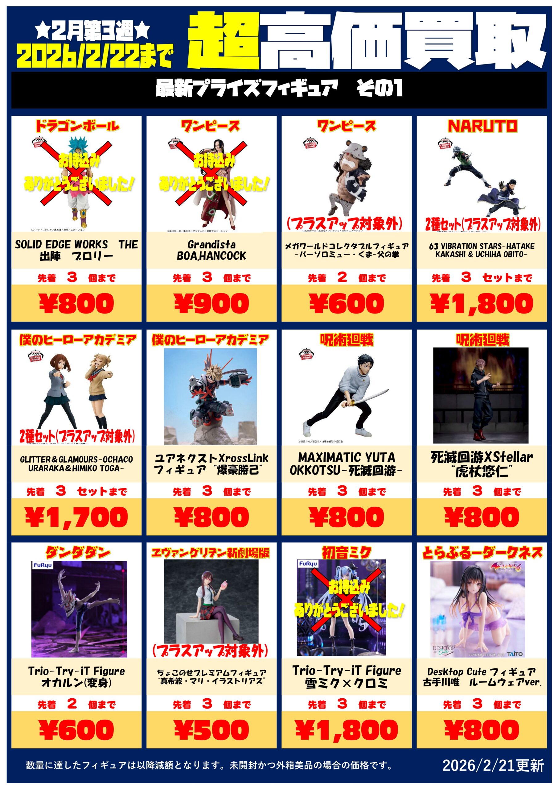 今日も朝からプライズフィギュア大量買取!数量に達したもの多数のため買取チラシ更新しました!