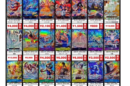 ワンピースカード新弾「OP15 神の島の冒険」シングルカード買取チラシ更新しました!2/28の15時時点での最新価格です!
