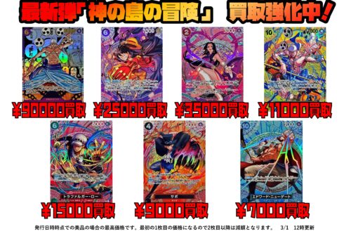 ワンピースカード新弾「OP15 神の島の冒険」シングルカード買取チラシ更新しました!3/1の12時時点での最新価格です!