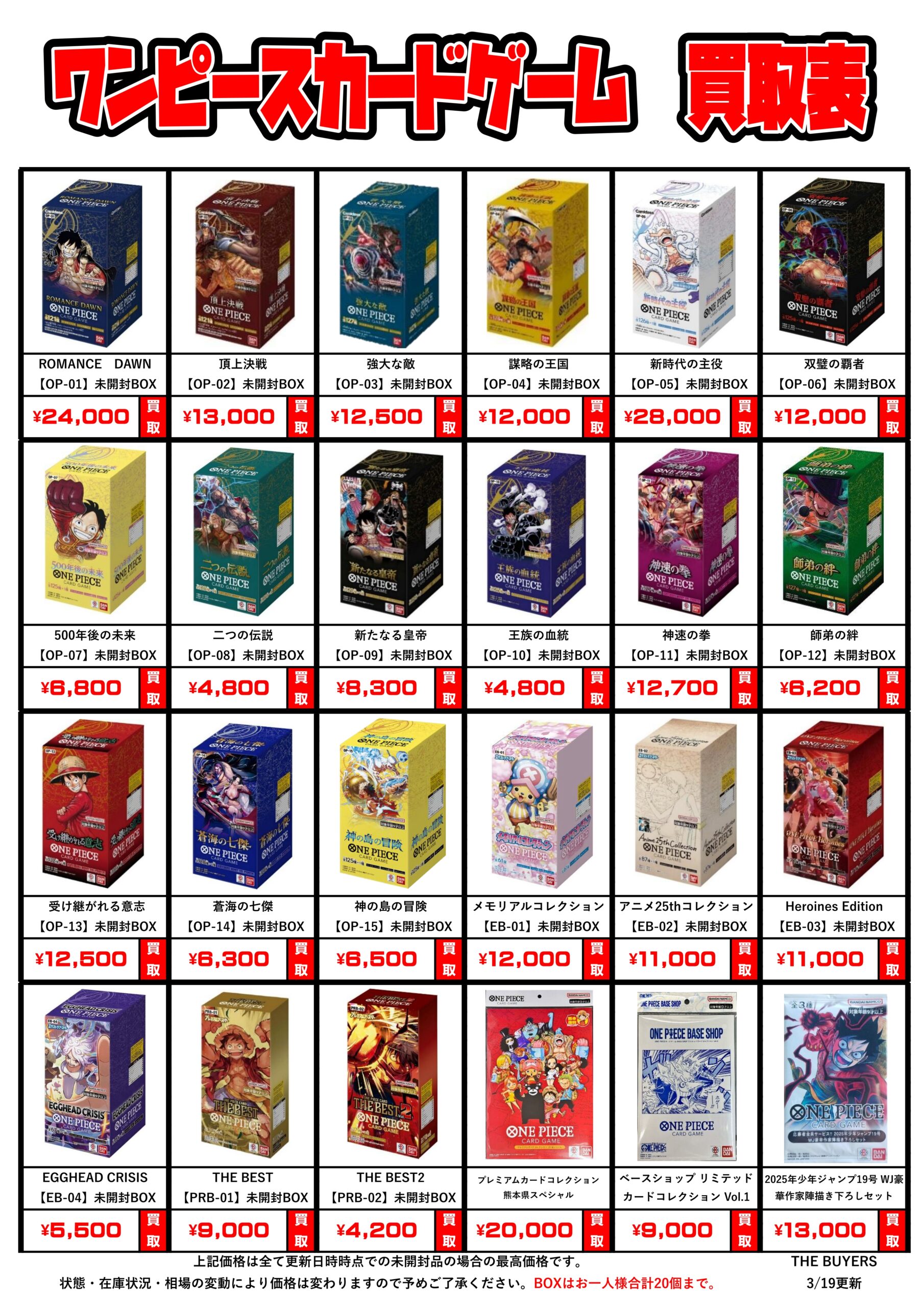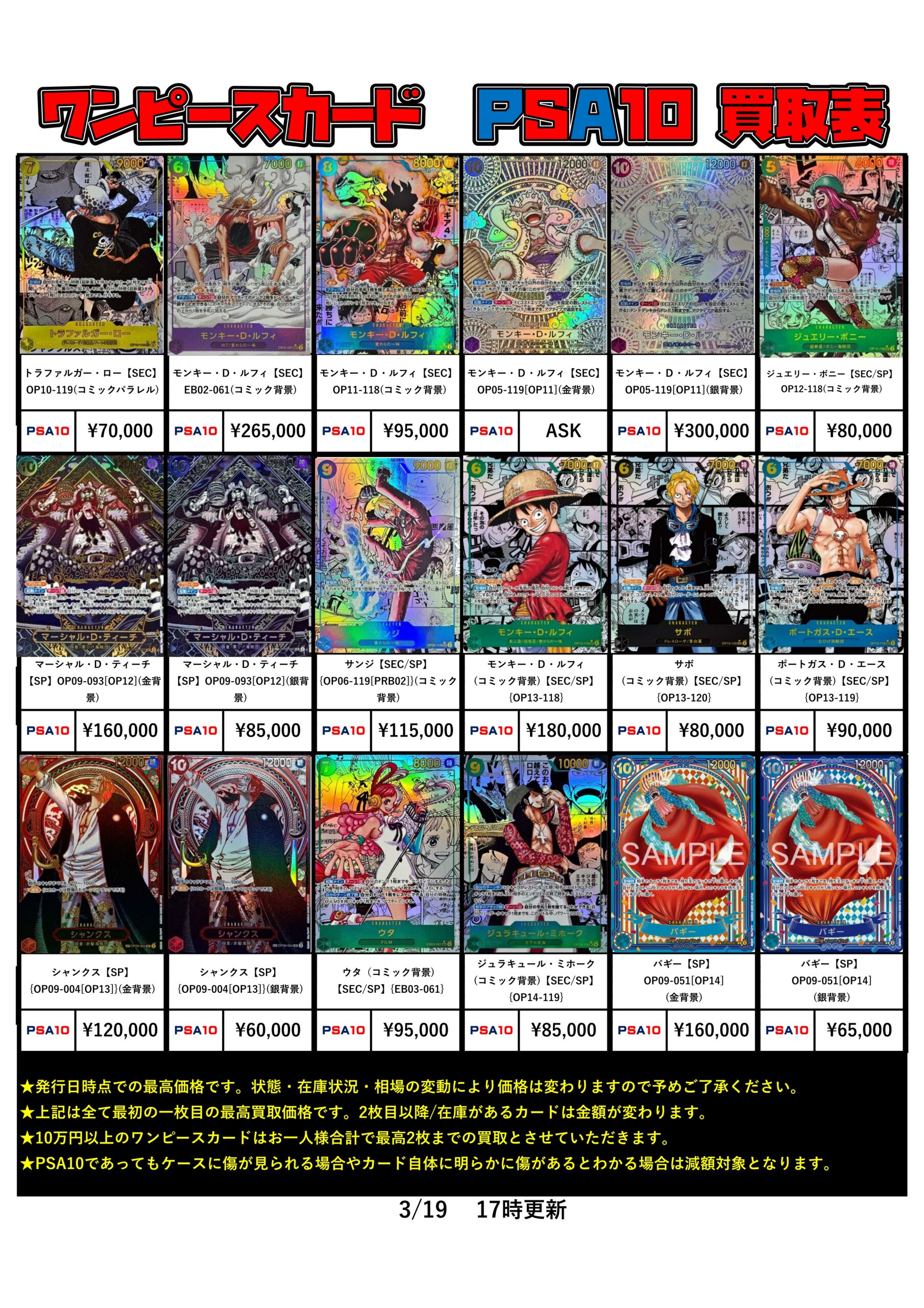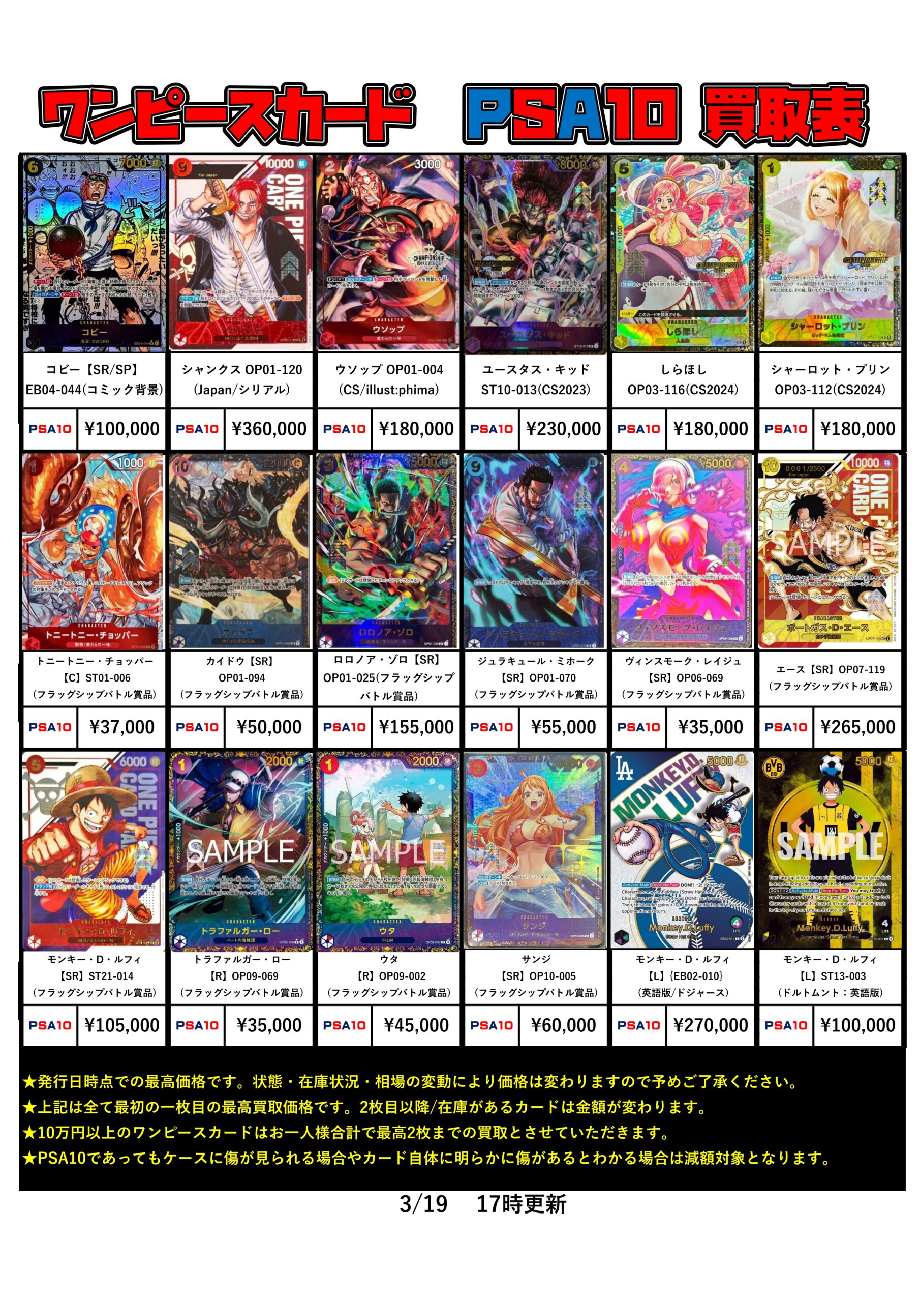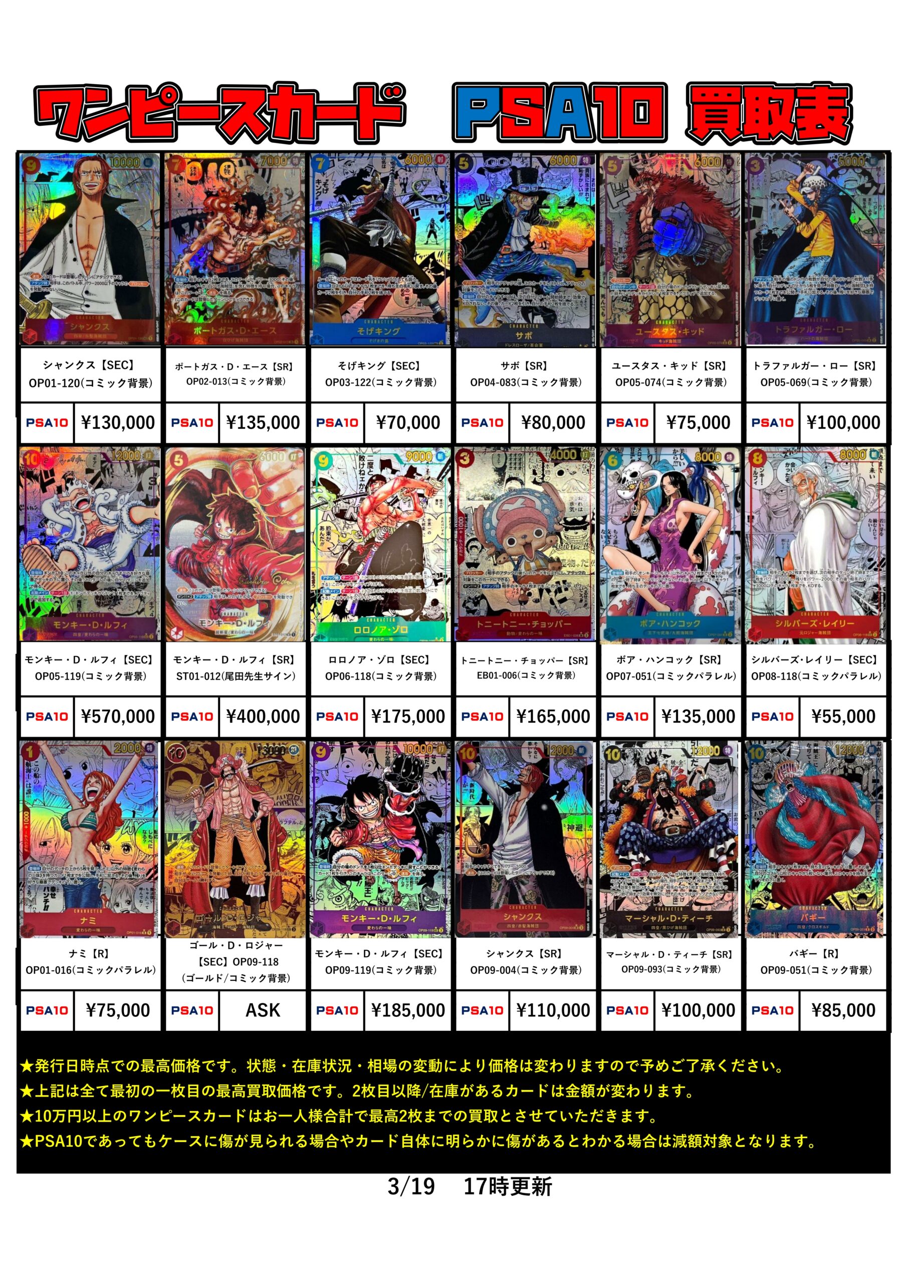 ワンピースカード PSA10/未開封BOX買取チラシ更新しました!
