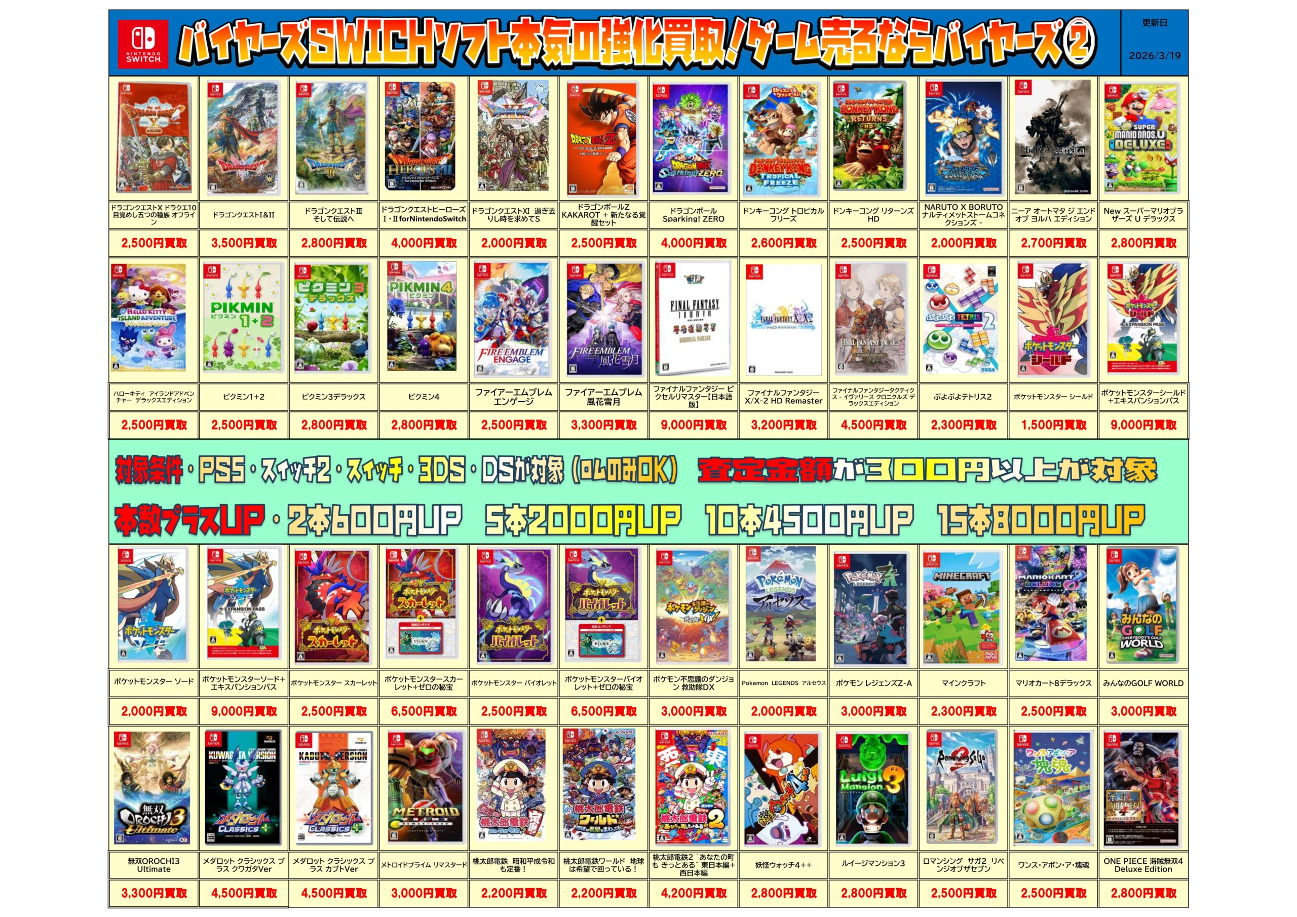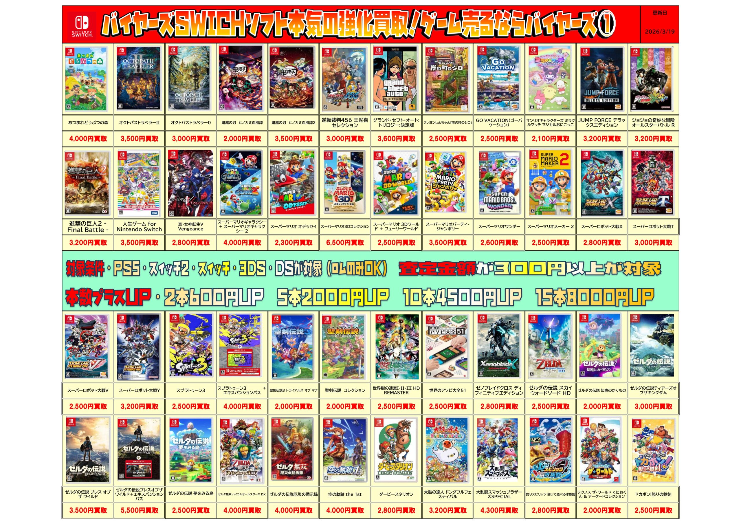 Switchソフト買取チラシ更新しました!