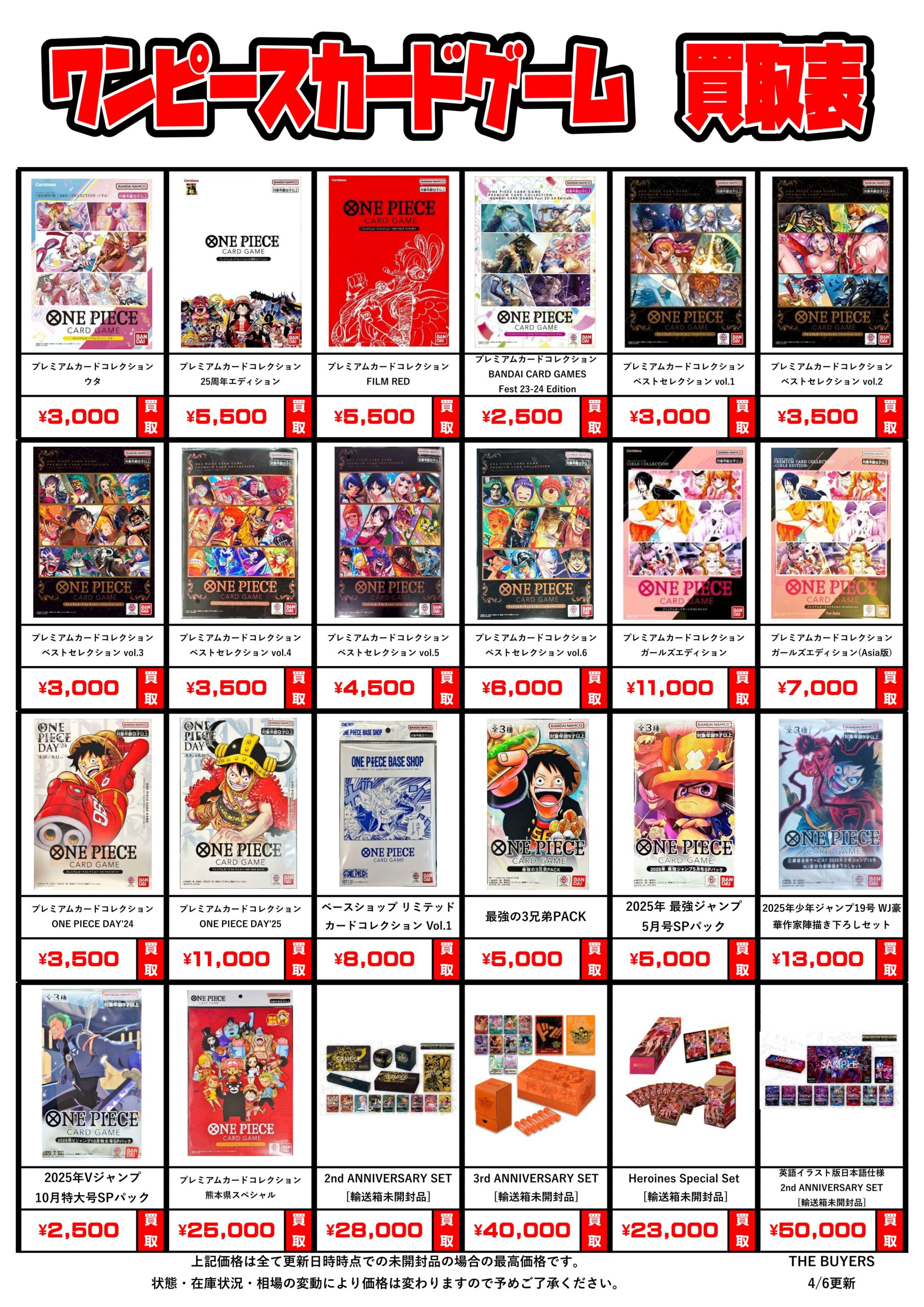 ワンピースカード未開封BOX/カードコレクションなど買取チラシ更新しました!