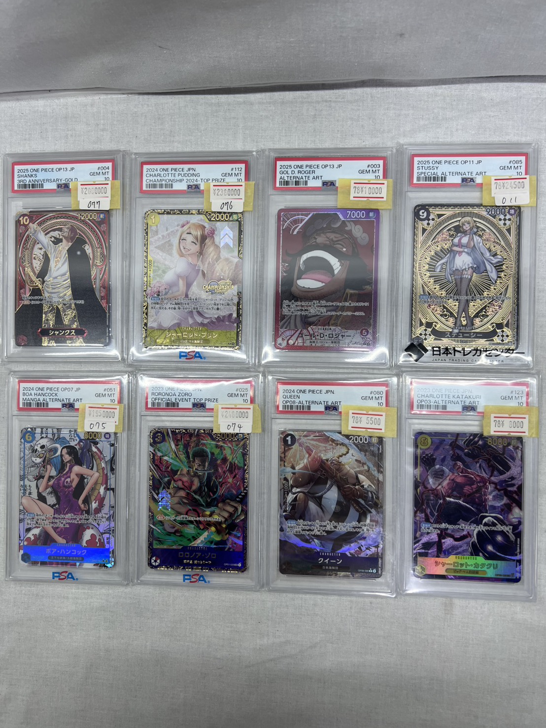 【ワンピースカード】PSA10カード大量に買取させていただきました!オンラインオリパ景品も大好物です!ぜひバイヤーズでお売り下さい!