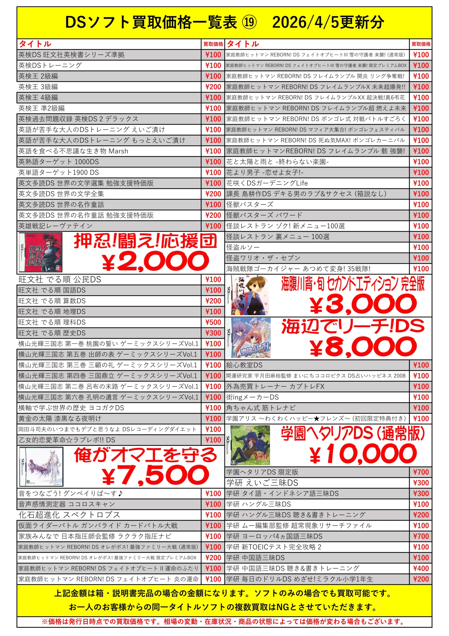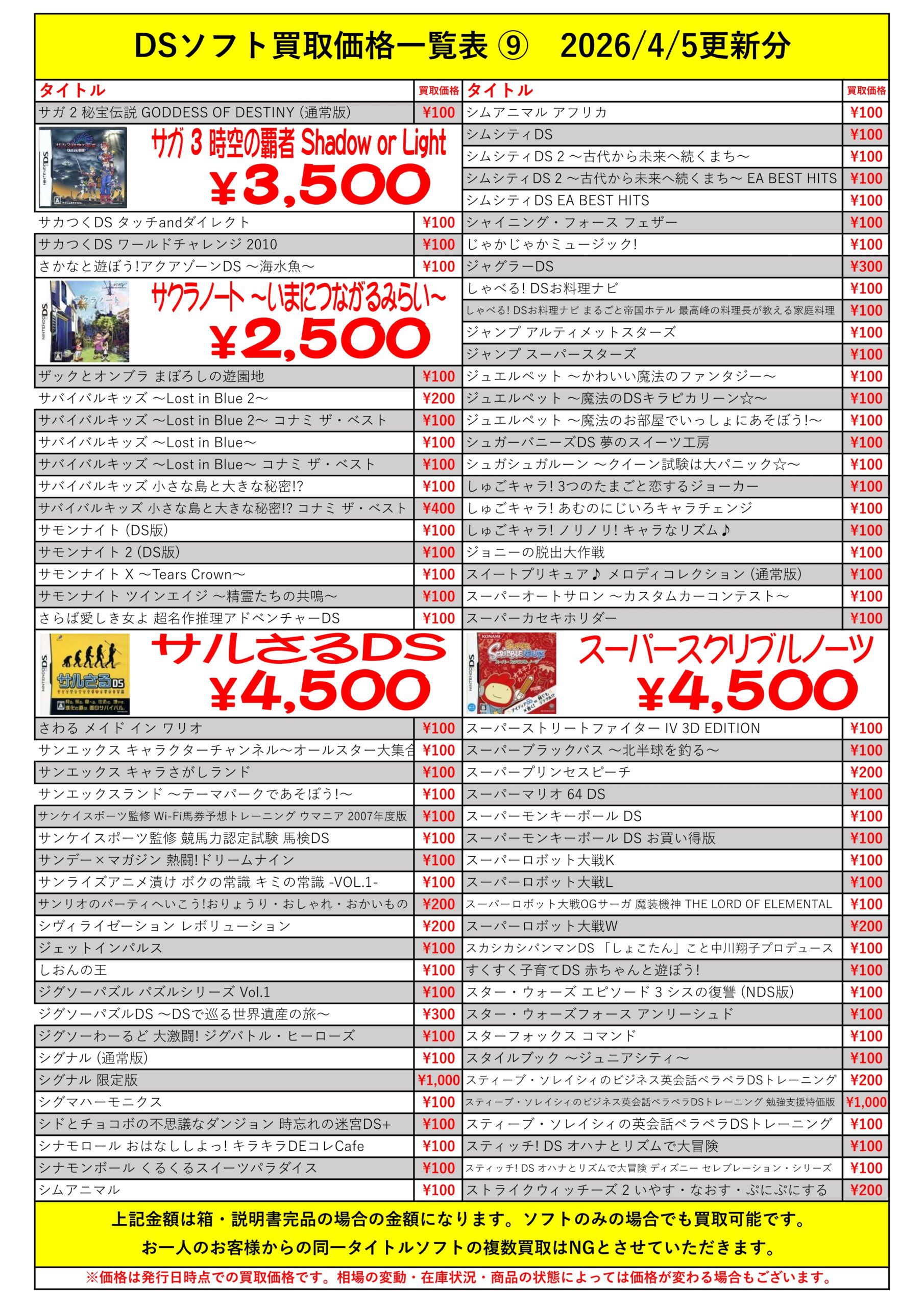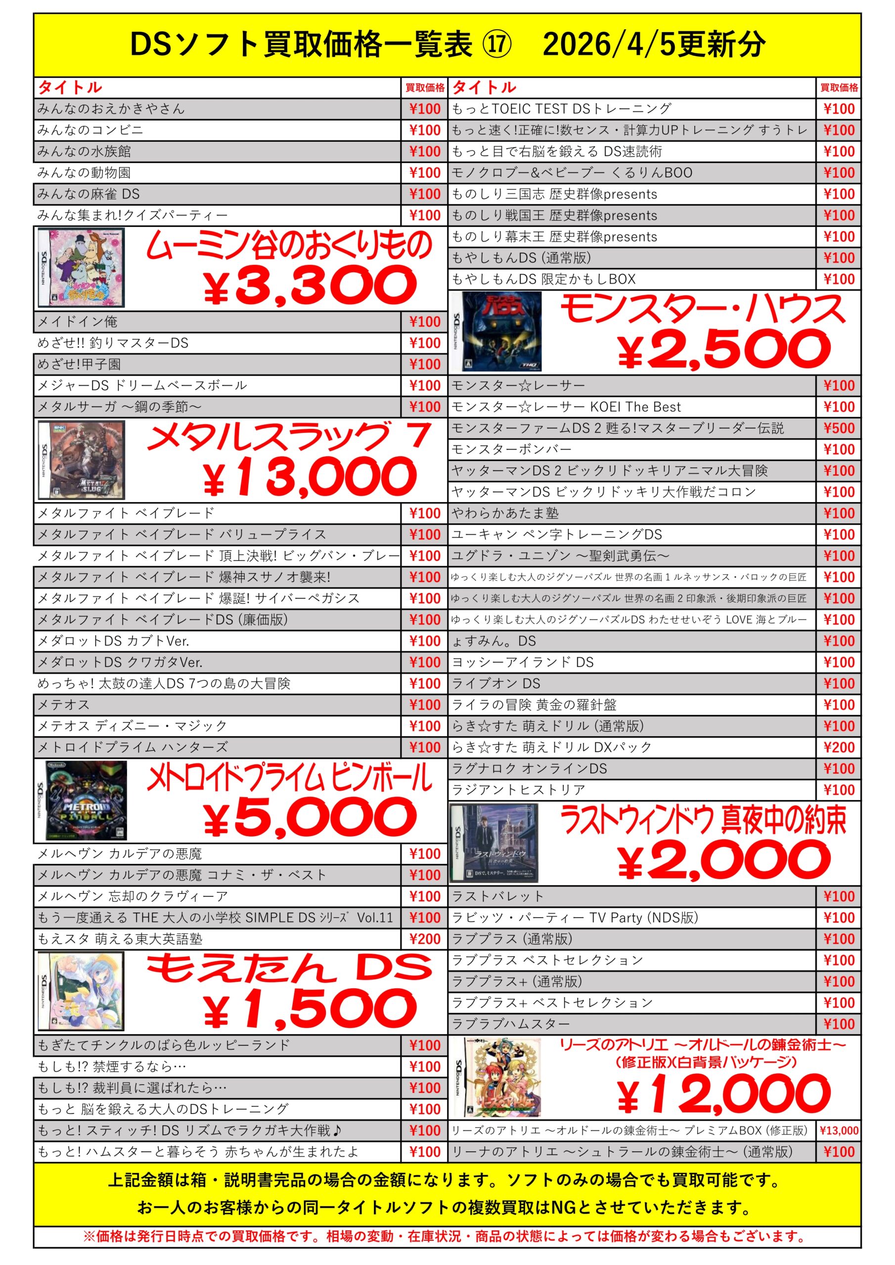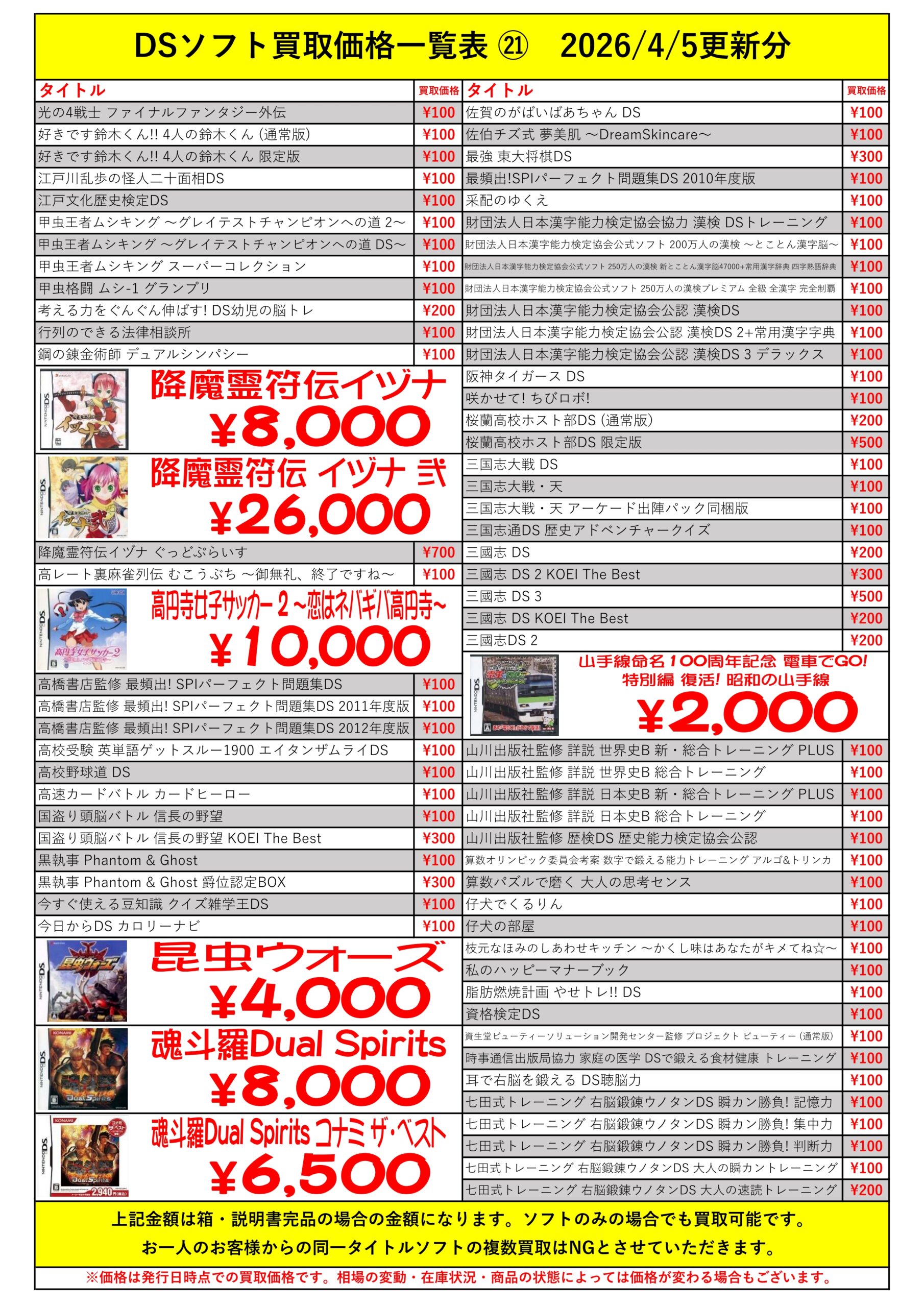 DSほぼ全タイトル買取リスト久しぶりに更新できました!ぜひバイヤーズでお売り下さい!