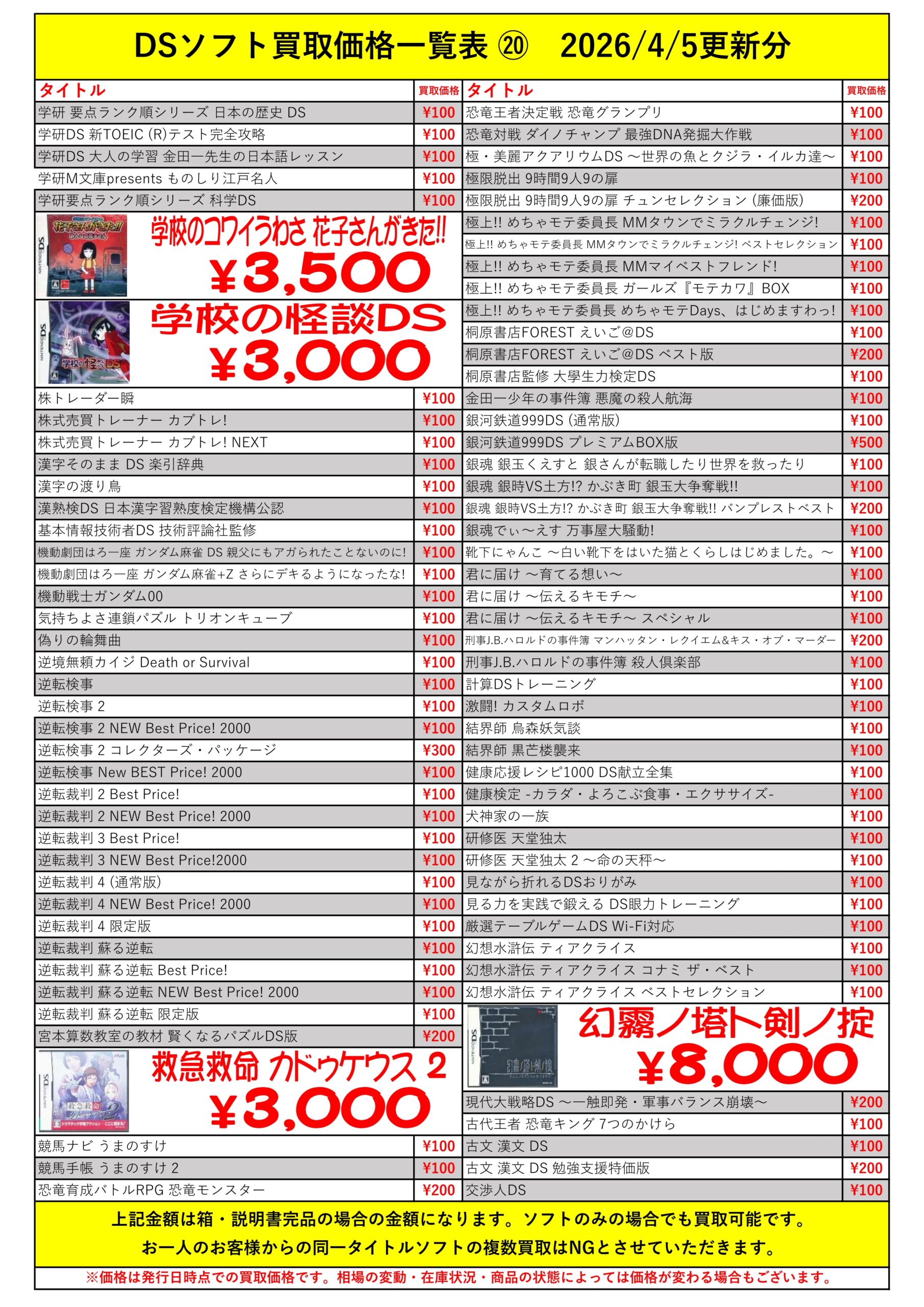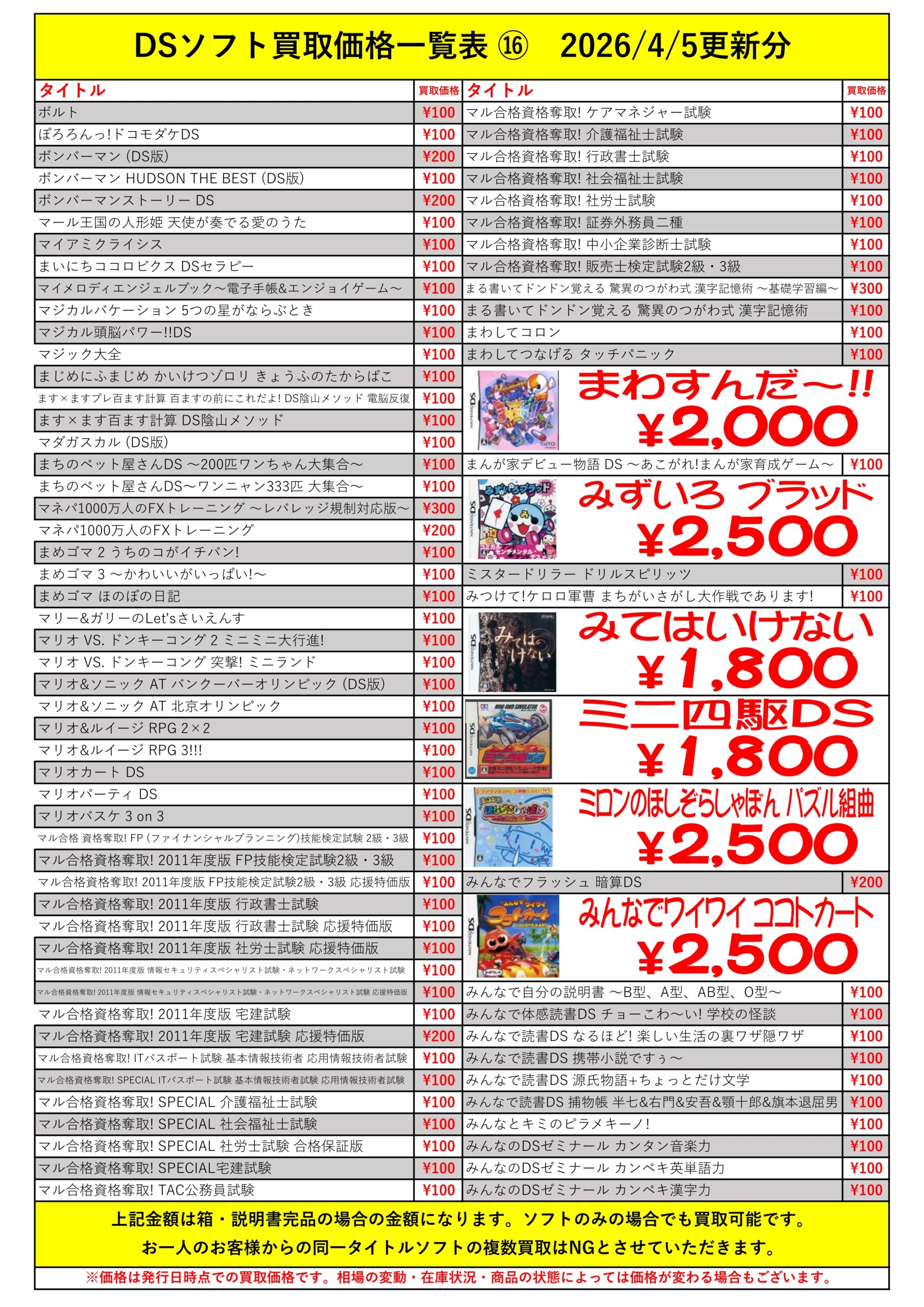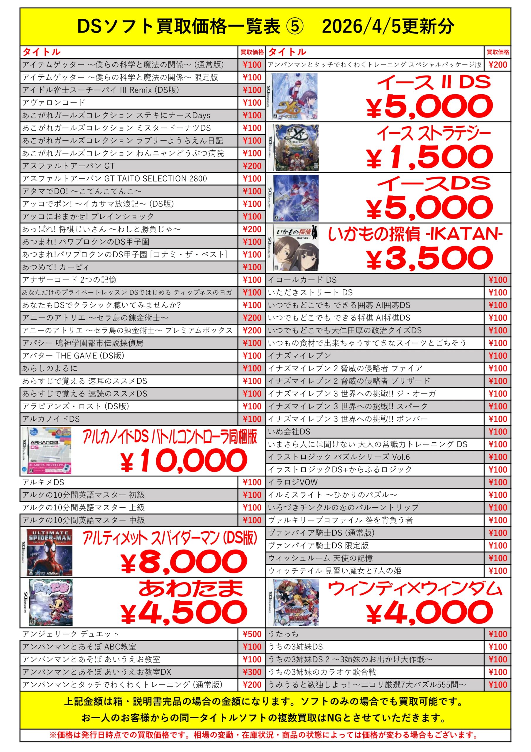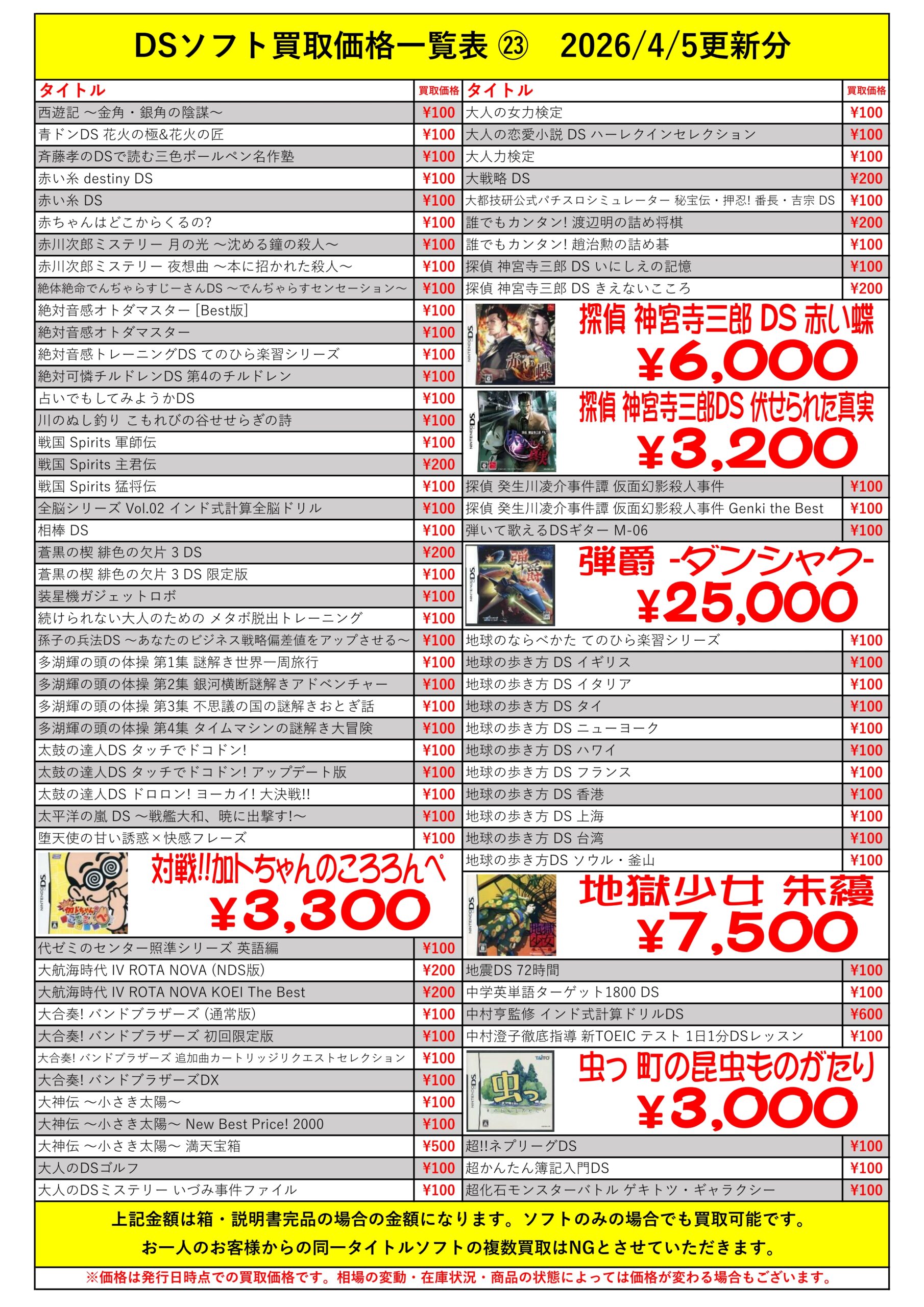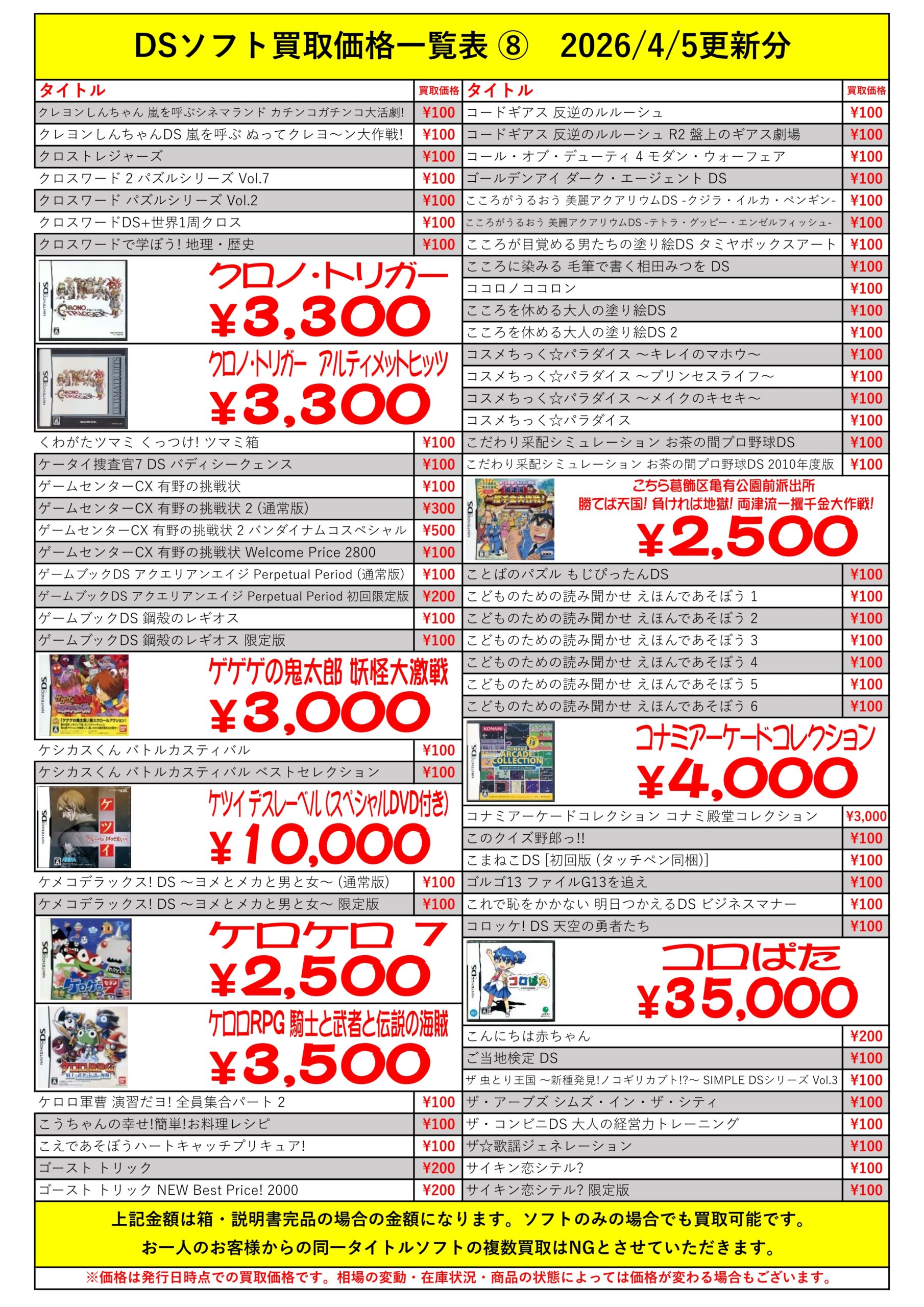 DSほぼ全タイトル買取リスト久しぶりに更新できました!ぜひバイヤーズでお売り下さい!