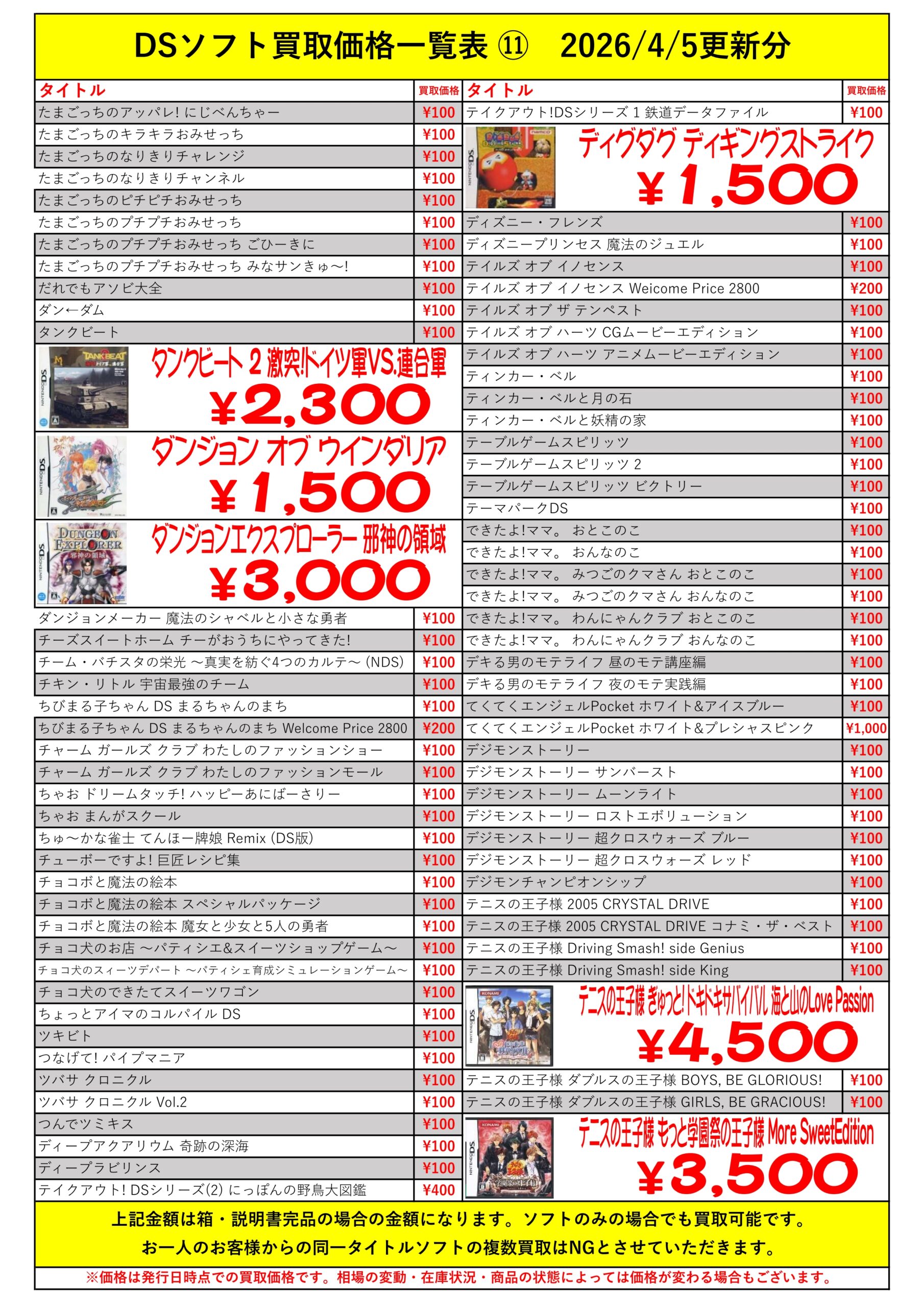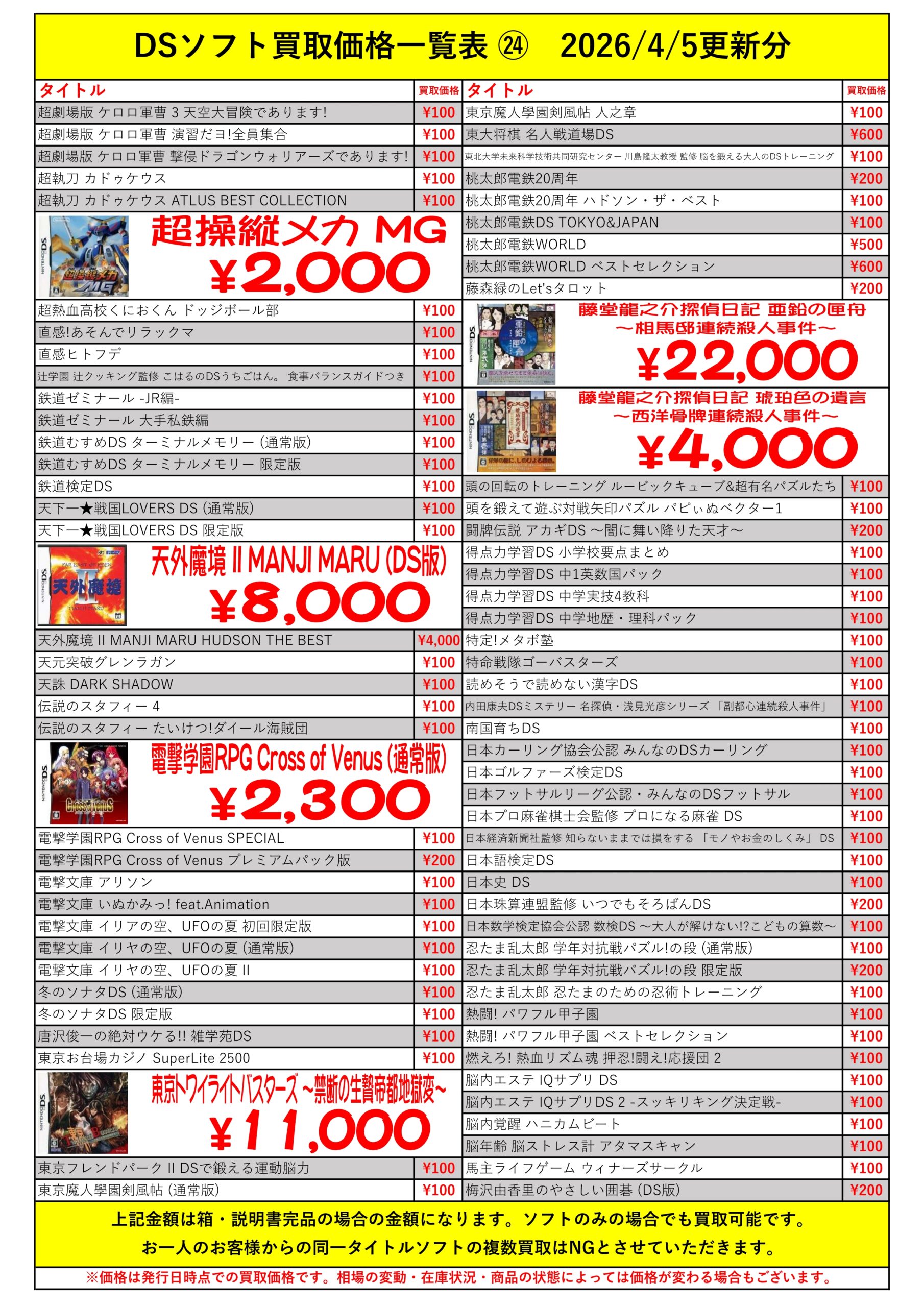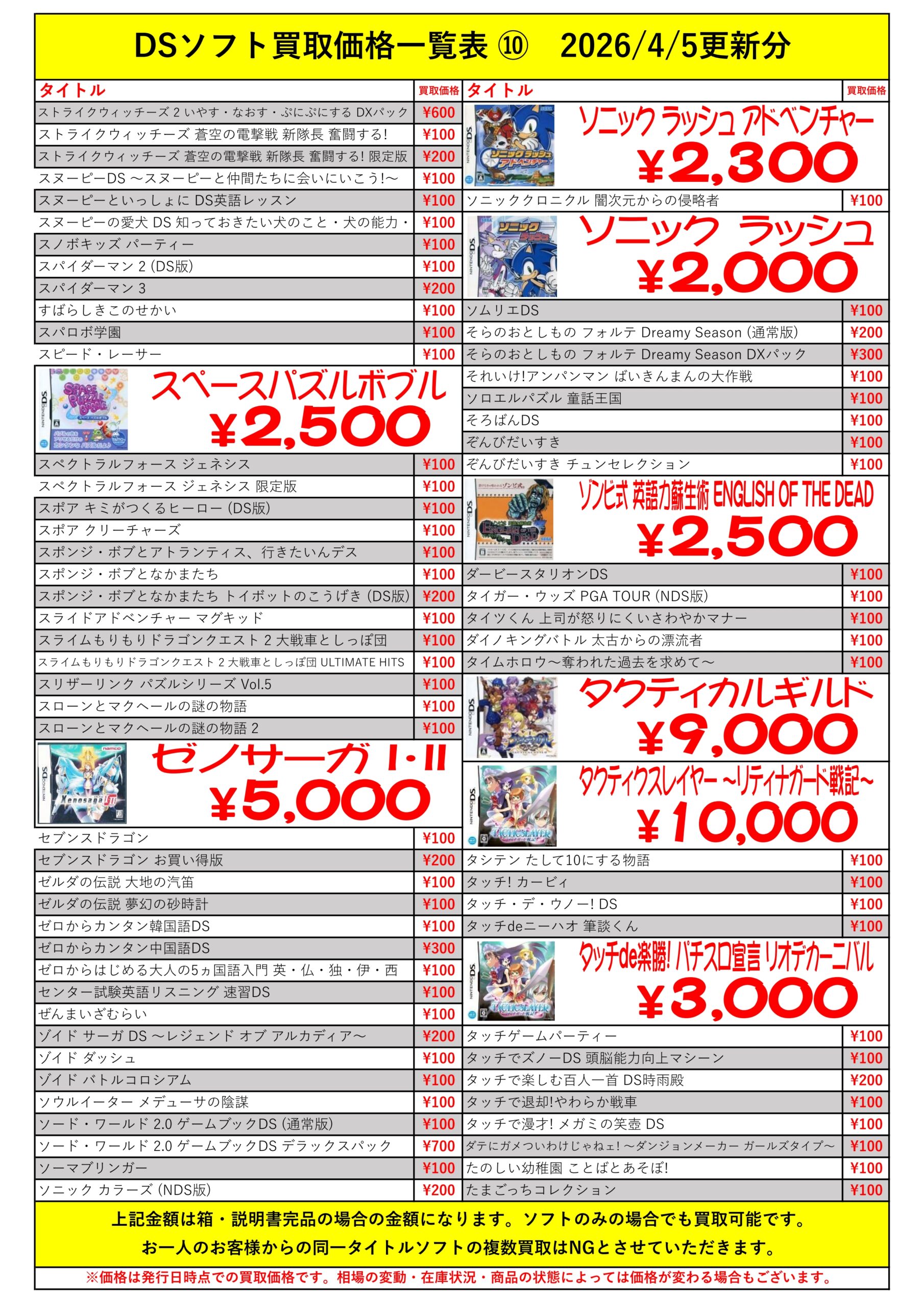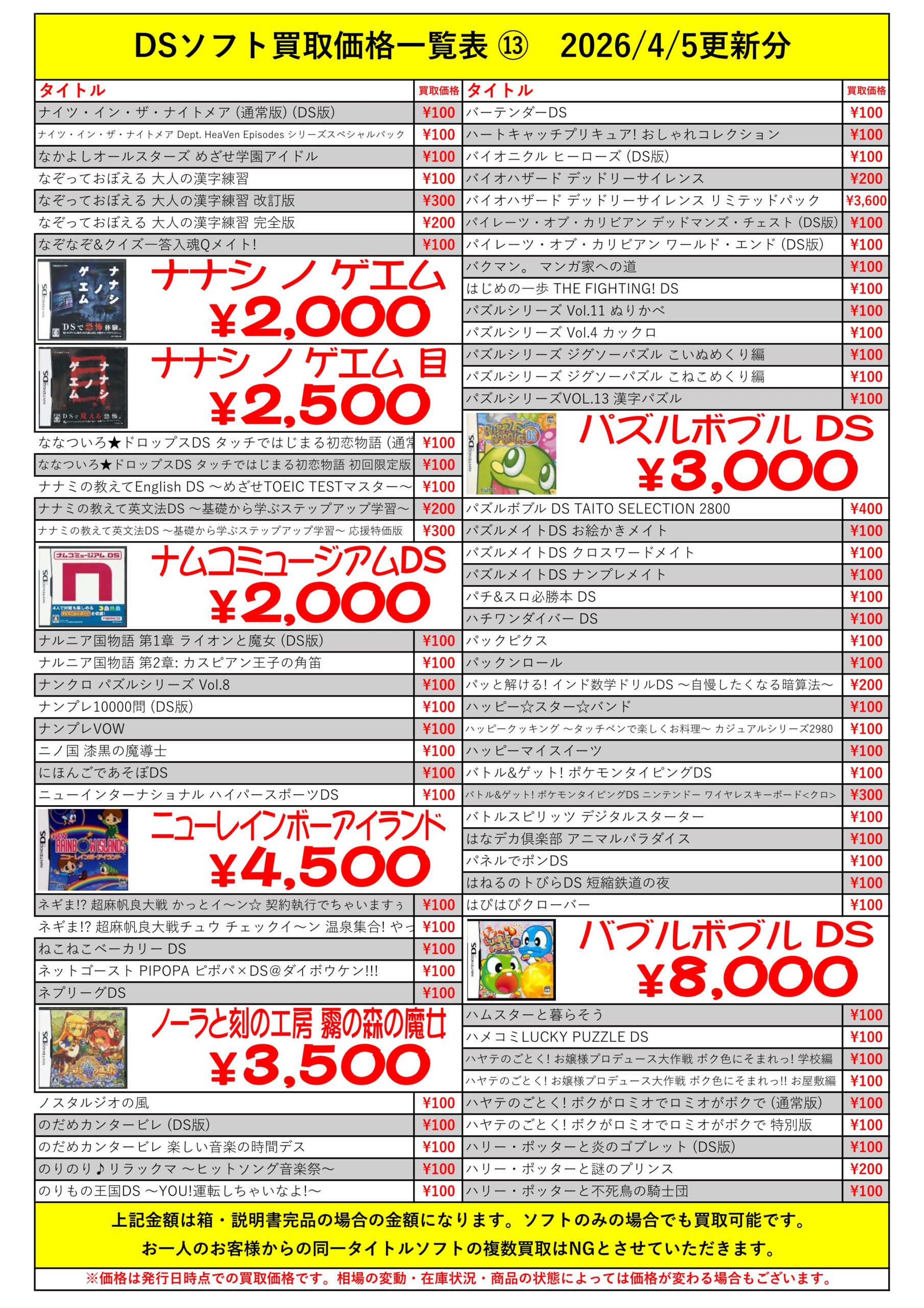 DSほぼ全タイトル買取リスト久しぶりに更新できました!ぜひバイヤーズでお売り下さい!