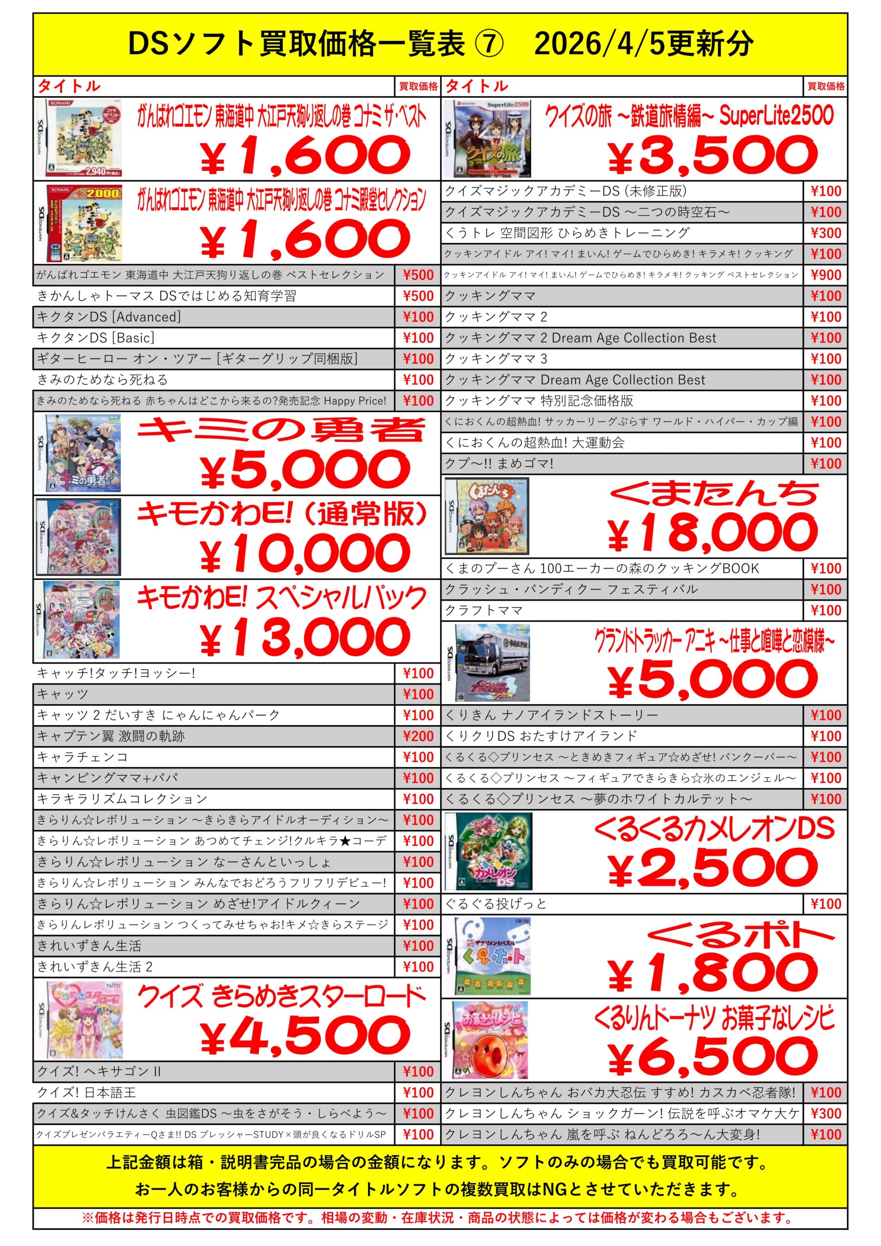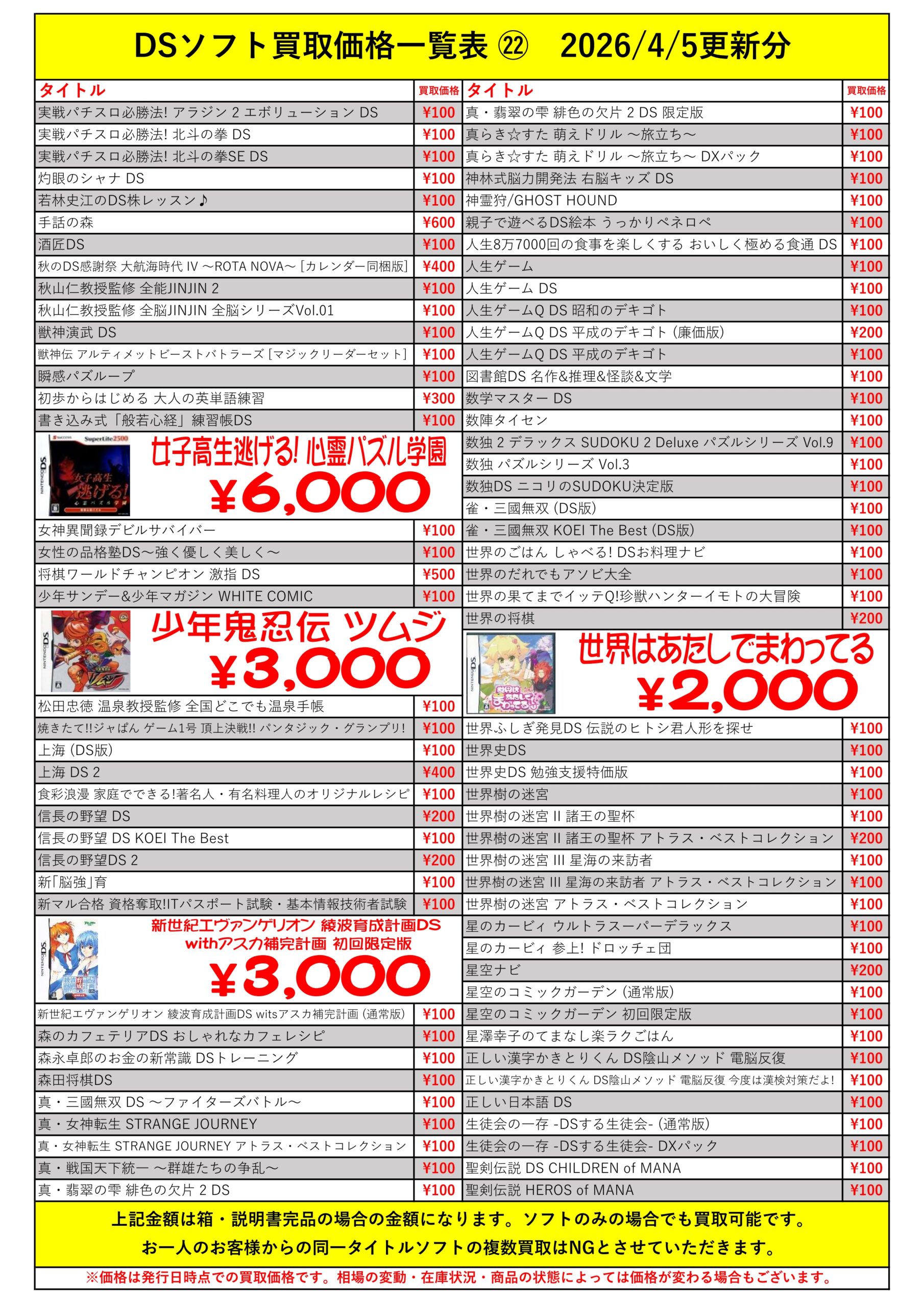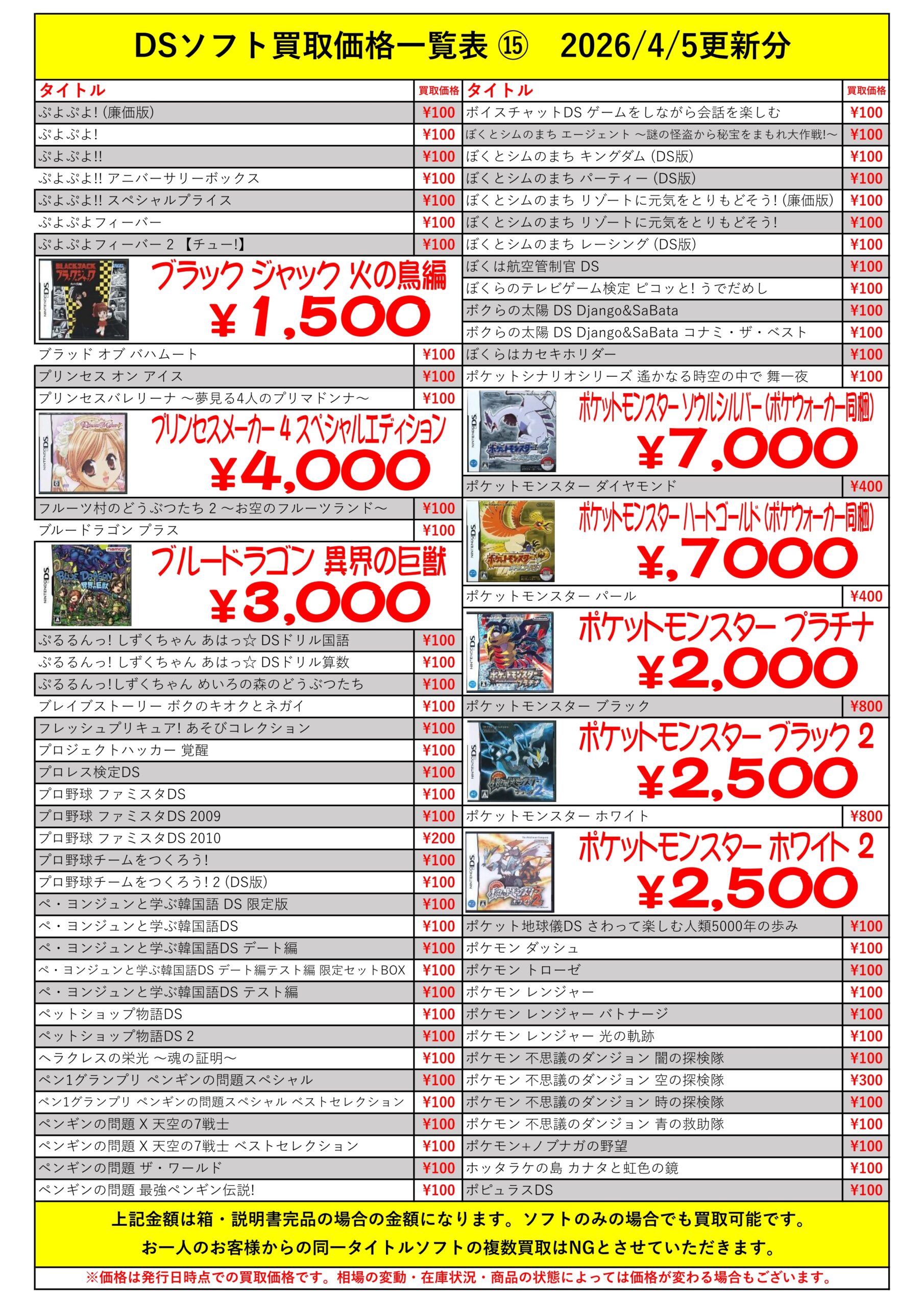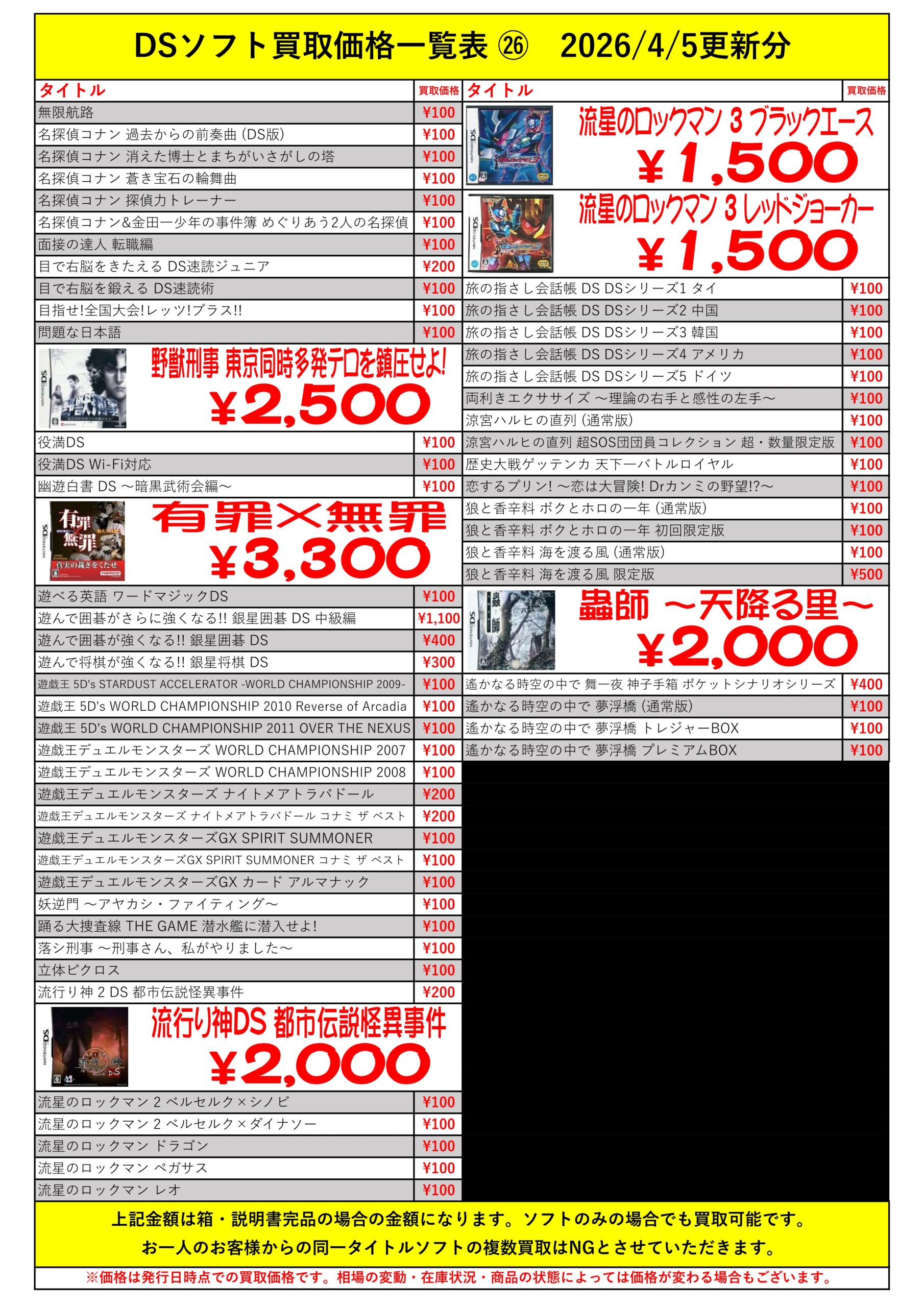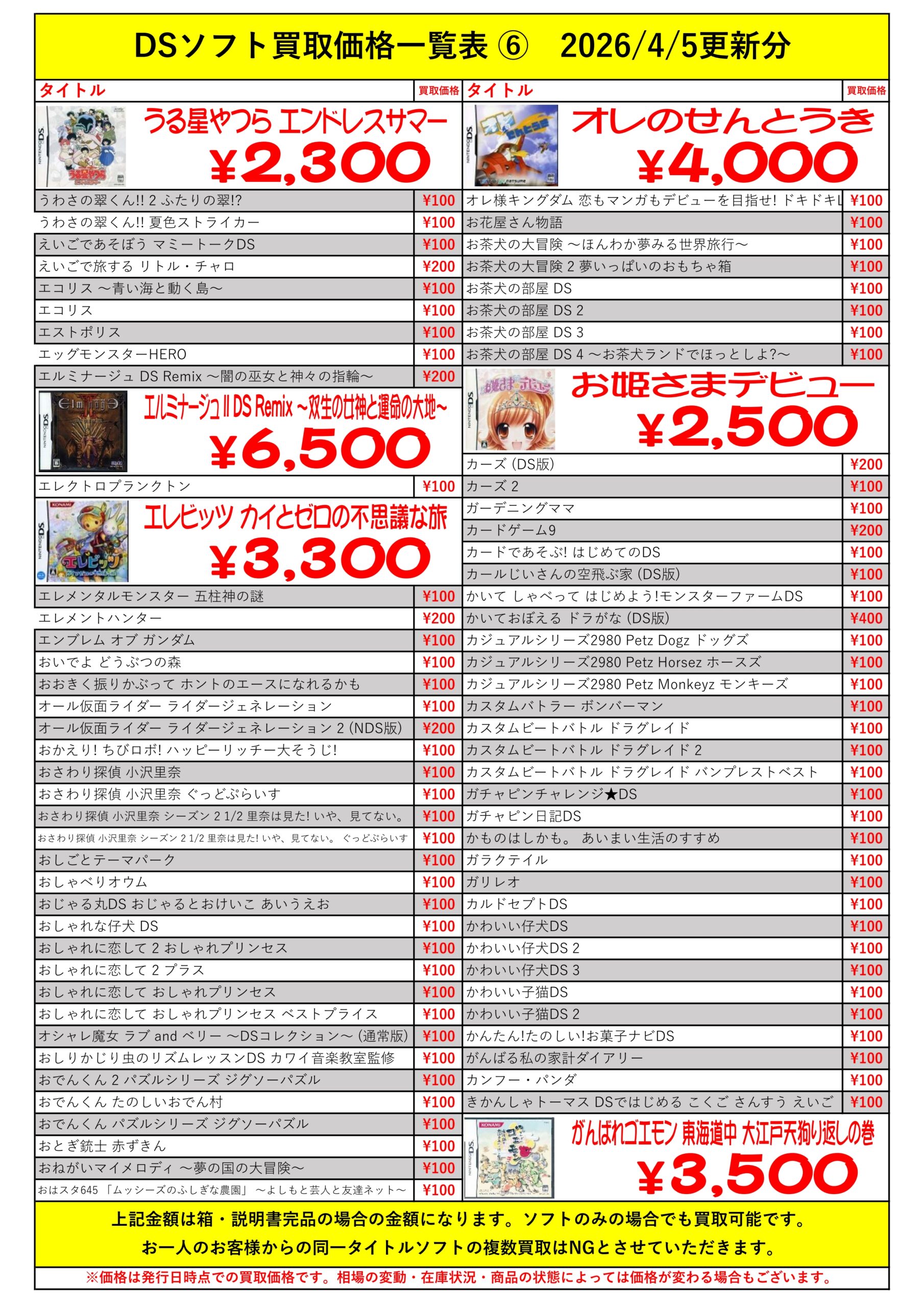 DSほぼ全タイトル買取リスト久しぶりに更新できました!ぜひバイヤーズでお売り下さい!
