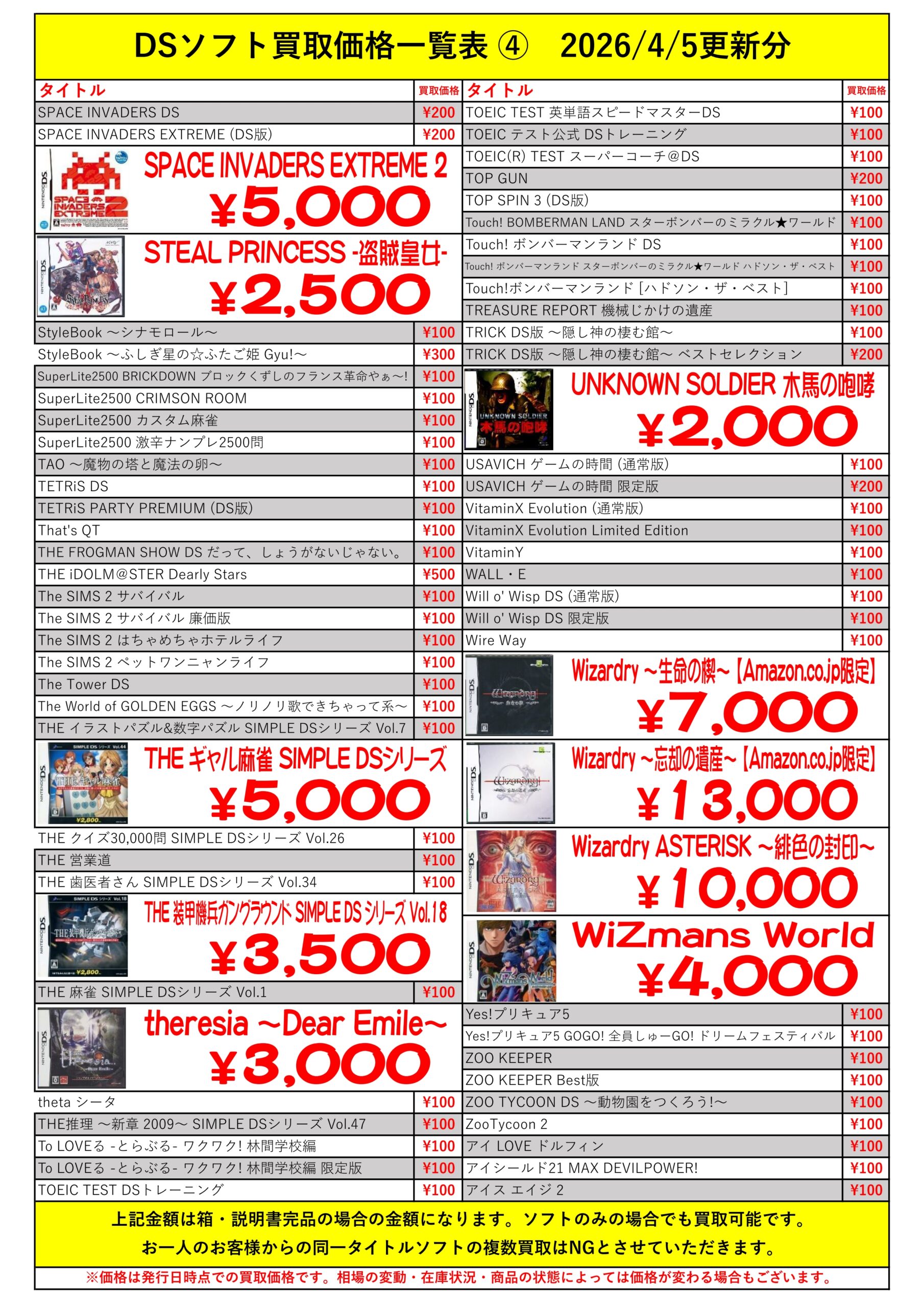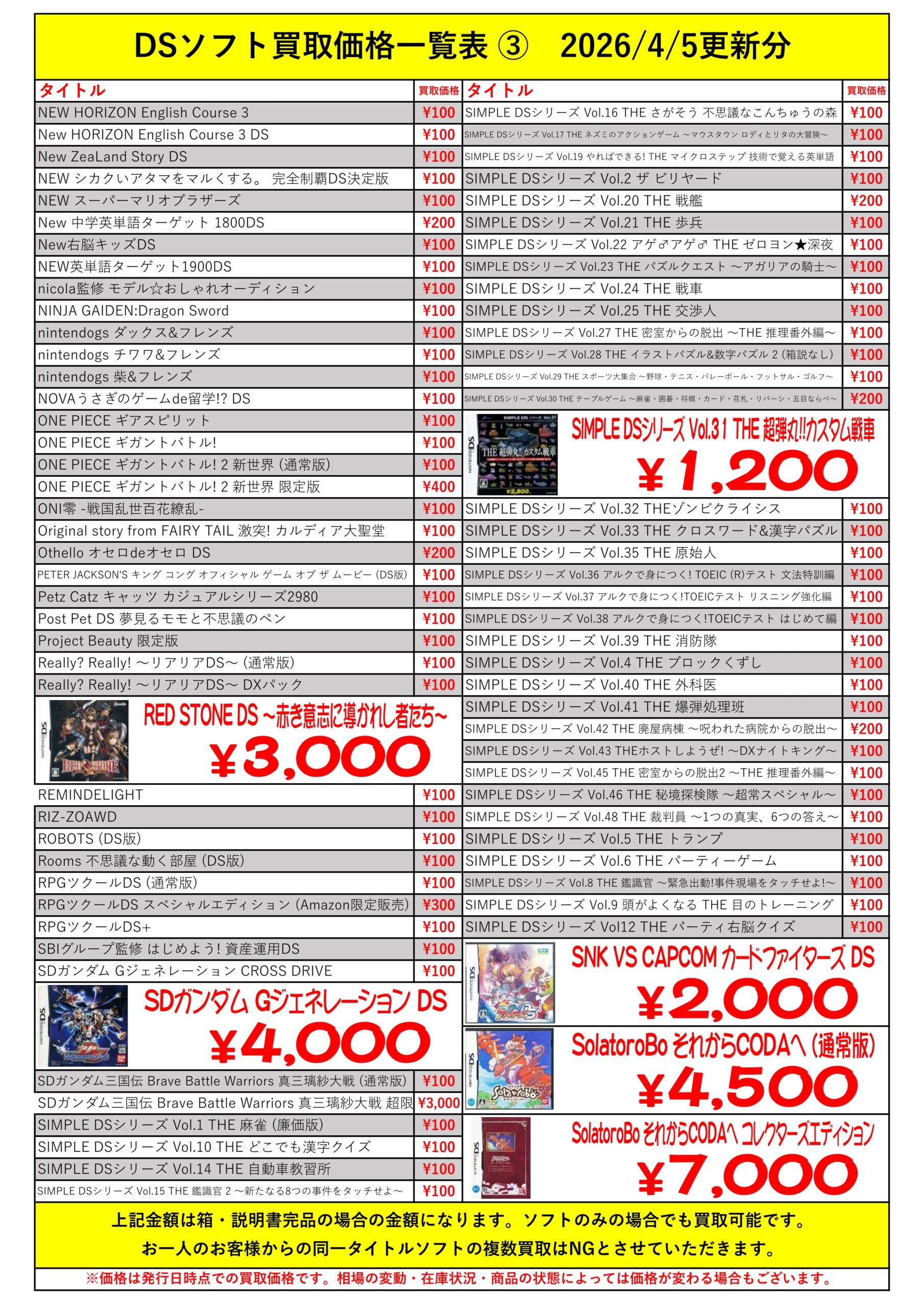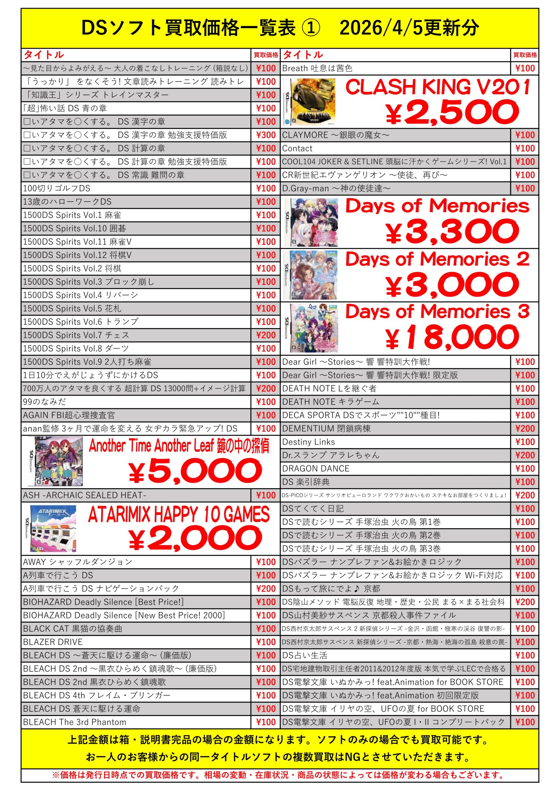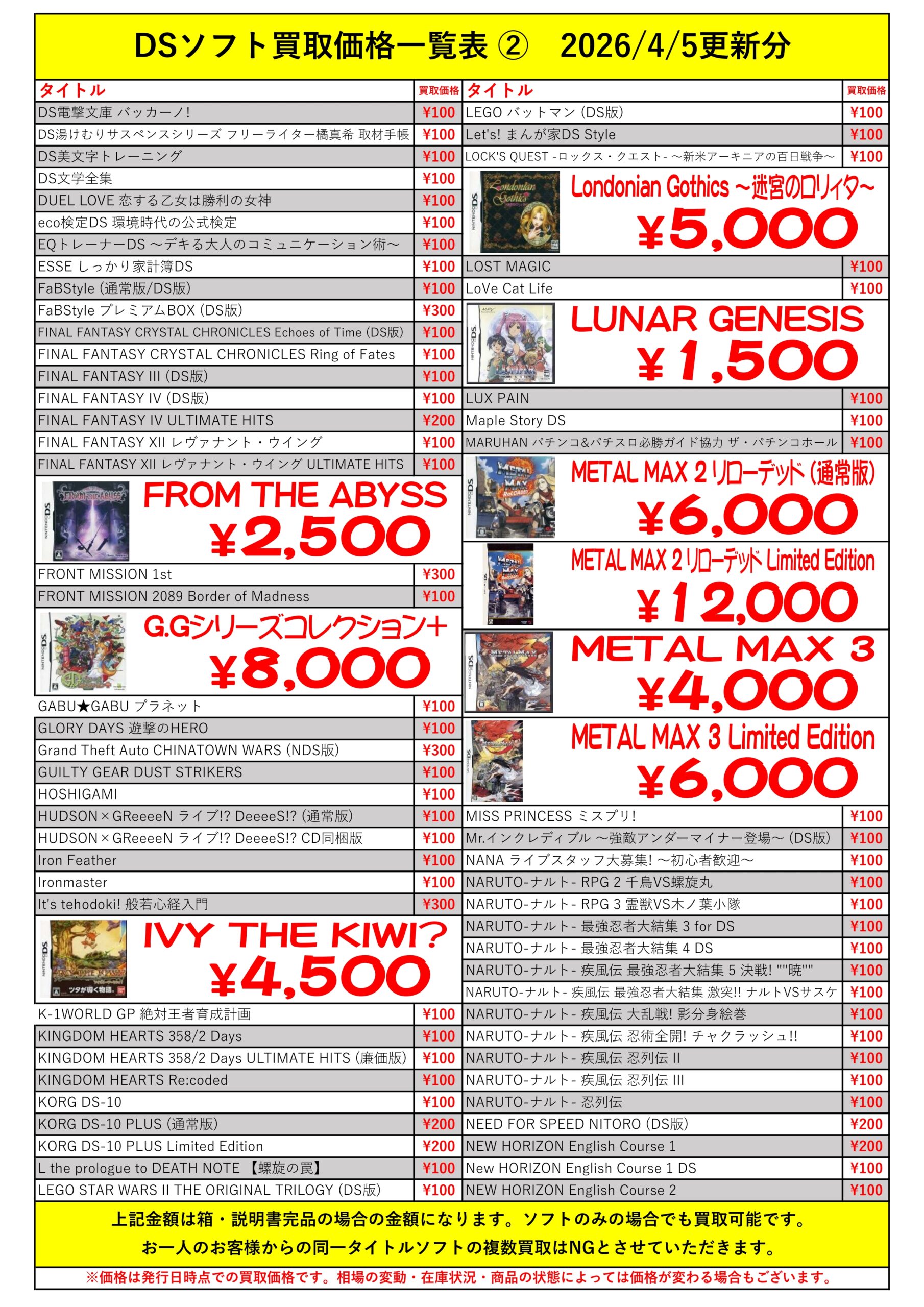 DSほぼ全タイトル買取リスト久しぶりに更新できました!ぜひバイヤーズでお売り下さい!