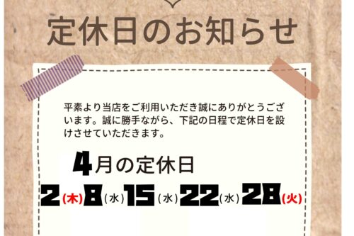 【重要】4月の定休日のお知らせ...