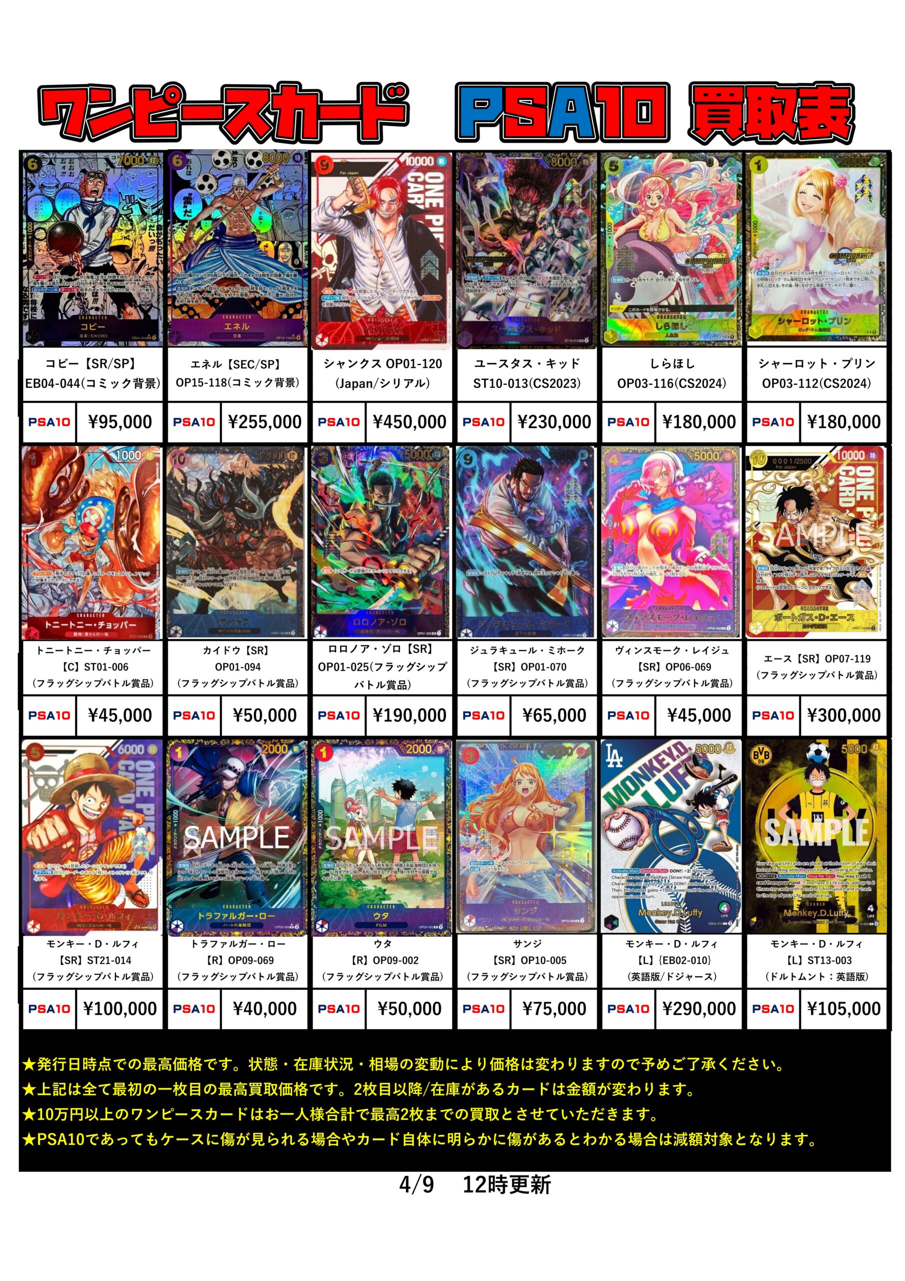 【ワンピースカード】PSA10買取チラシ更新しました!