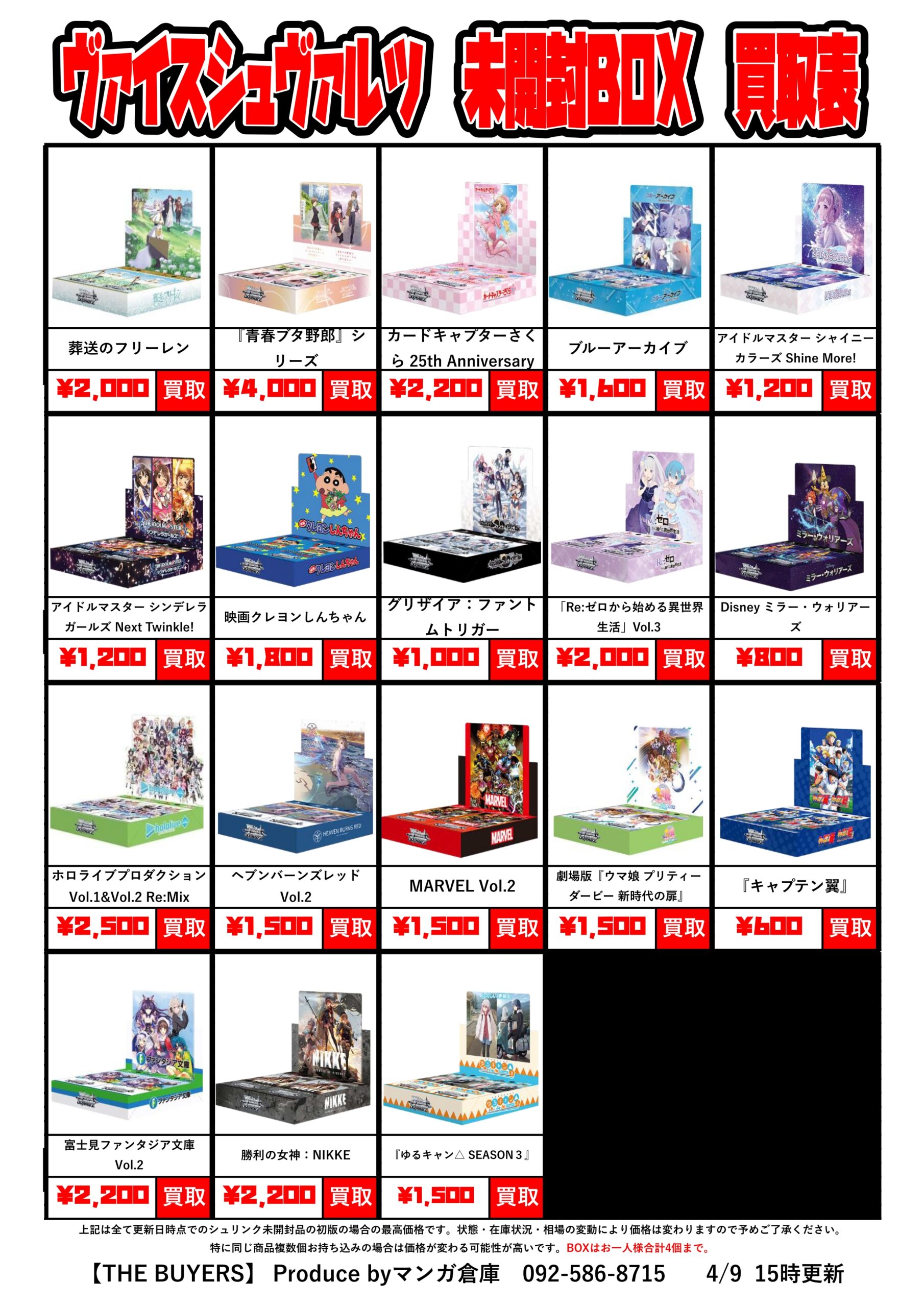 ヴァイスシュヴァルツの未開封BOXの買取チラシ更新しました!