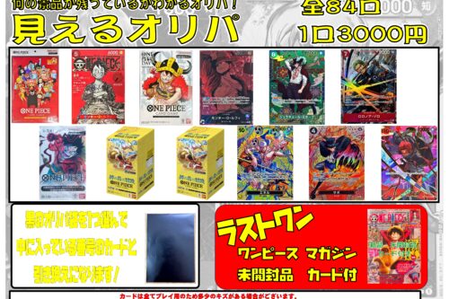 見えるオリパ32弾スタートしました!熊本スペシャルやマガジンルフィなど人気景品多数!早いもの勝ちなのでぜひバイヤーズでチャレンジを!