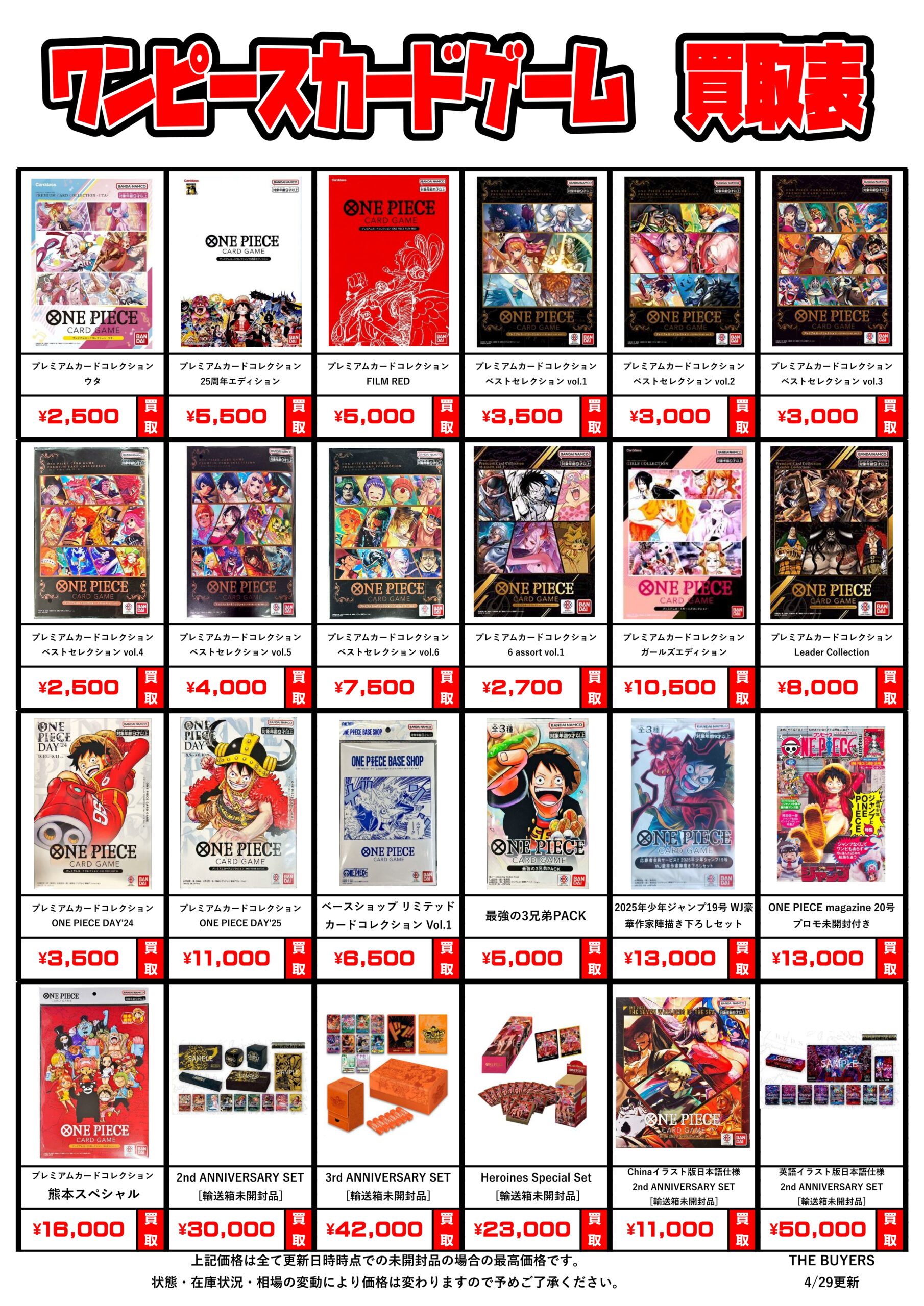 ワンピースカード未開封BOX/プレミアムカードコレクション熊本スペシャルなど買取チラシ更新しました!