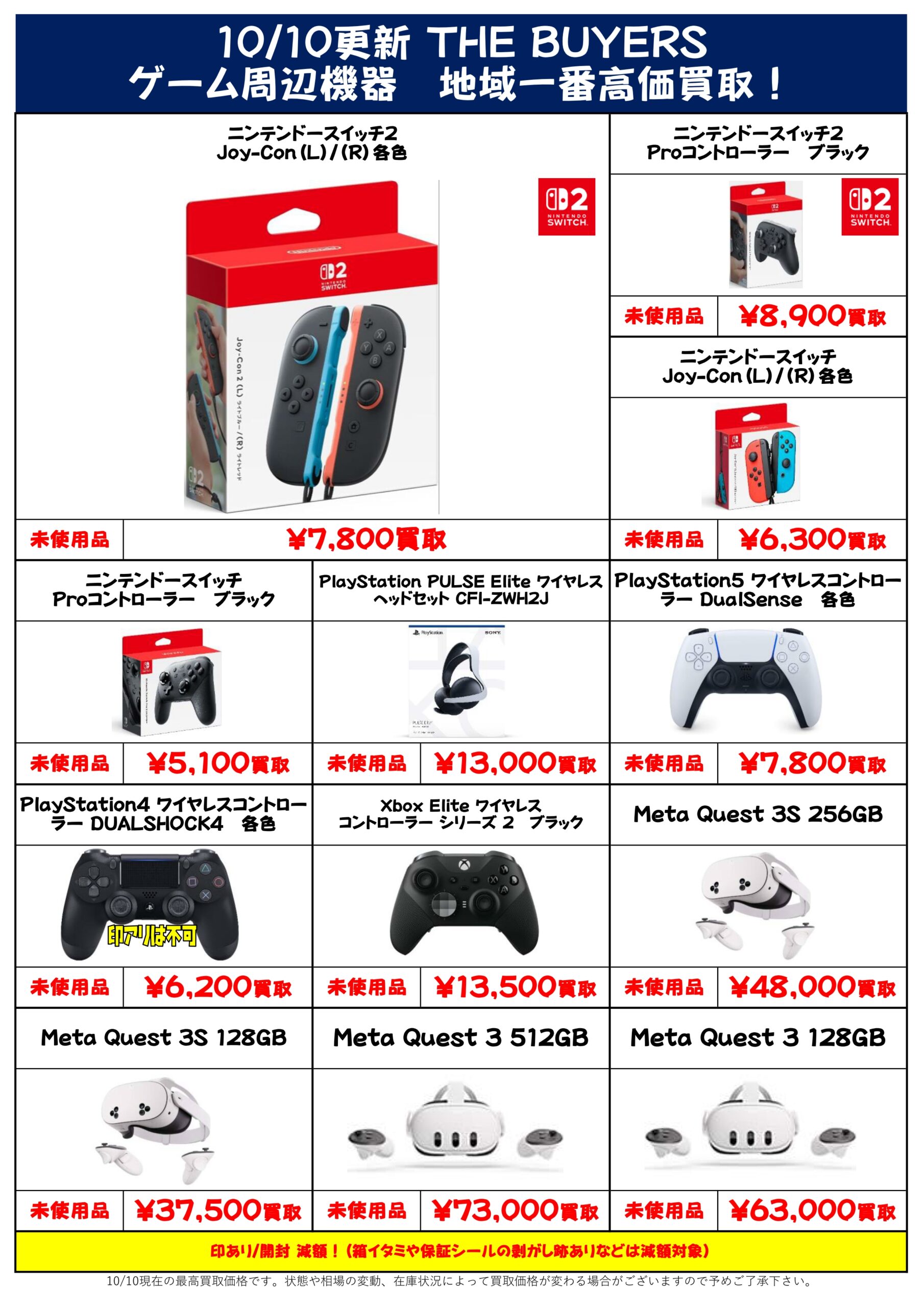 10/10 ゲーム機本体/周辺機器の買取チラシ更新しました!