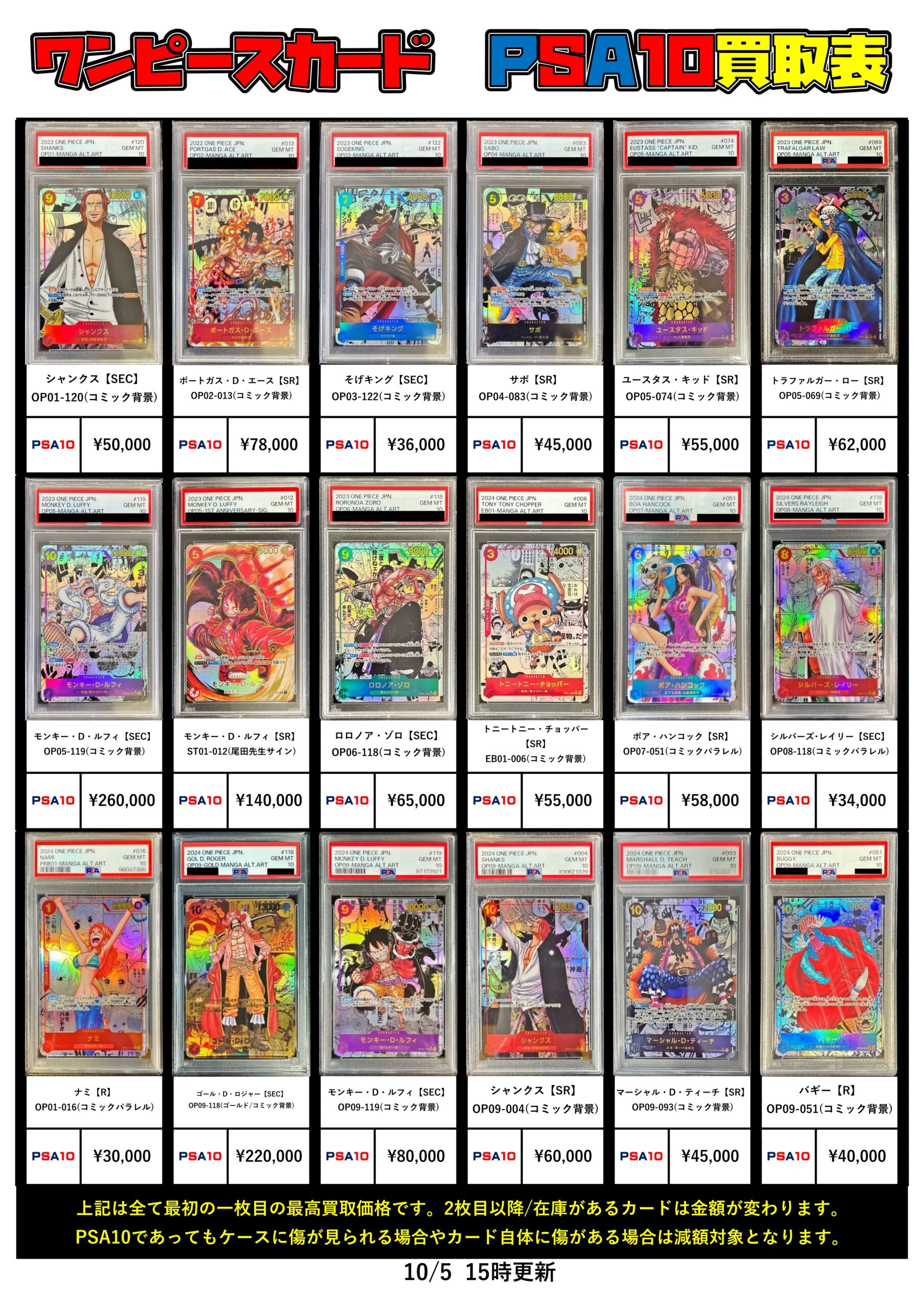 【ワンピースカード】PSA10・未開封BOXの買取チラシ更新しました!