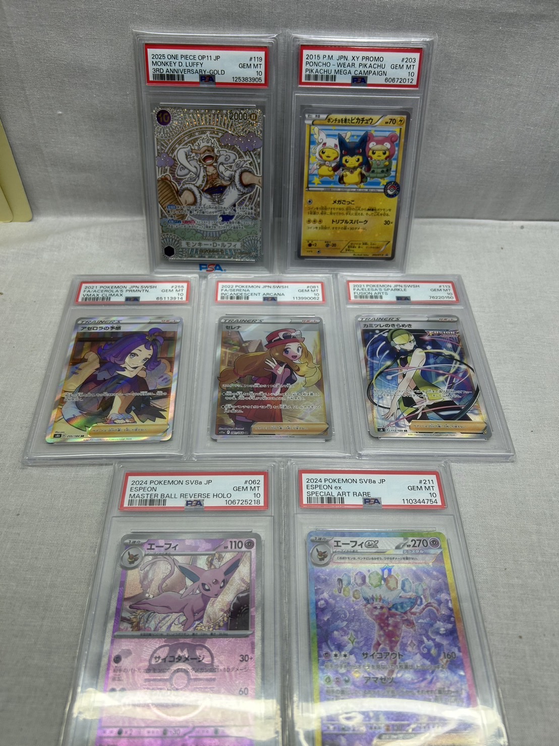 金背景ニカルフィやポンチョを着たピカチュウなど本日も高額PSA10カードたくさん買取させていただきました!PSA10はぜひバイヤーズでお売り下さい! お知らせ 買取商品 買取告知 カード 2025年10月18日
