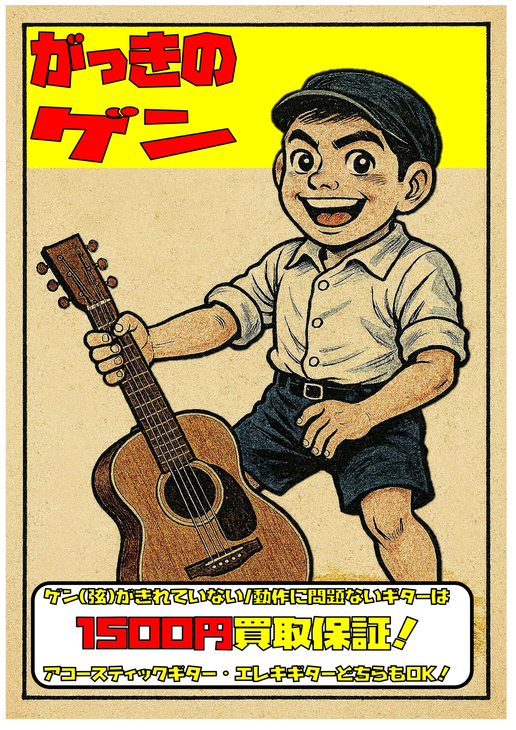 弦が切れていない/動作に問題のないエレキギター・アコースティックギター1500円買取保証!不要なギターお売り下さい!