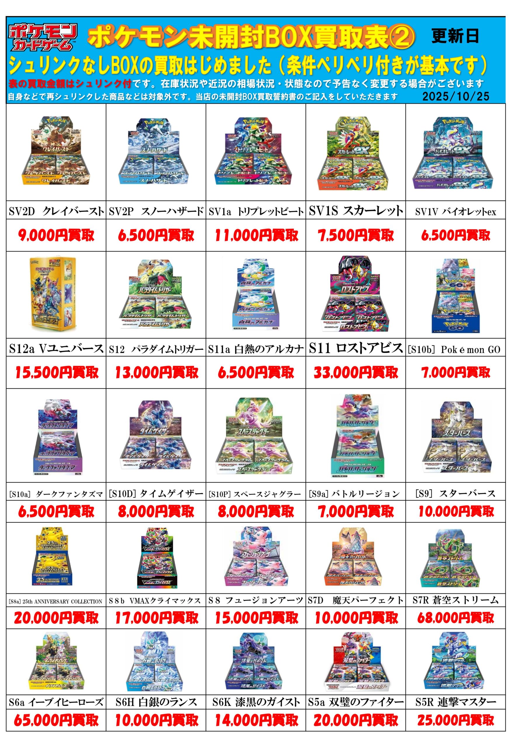 ポケモンカード未開封BOX・限定BOX買取チラシ更新しました!