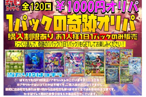 1日1人1パック限定!ポケモンカード1パックの奇跡オリパ開始しました!