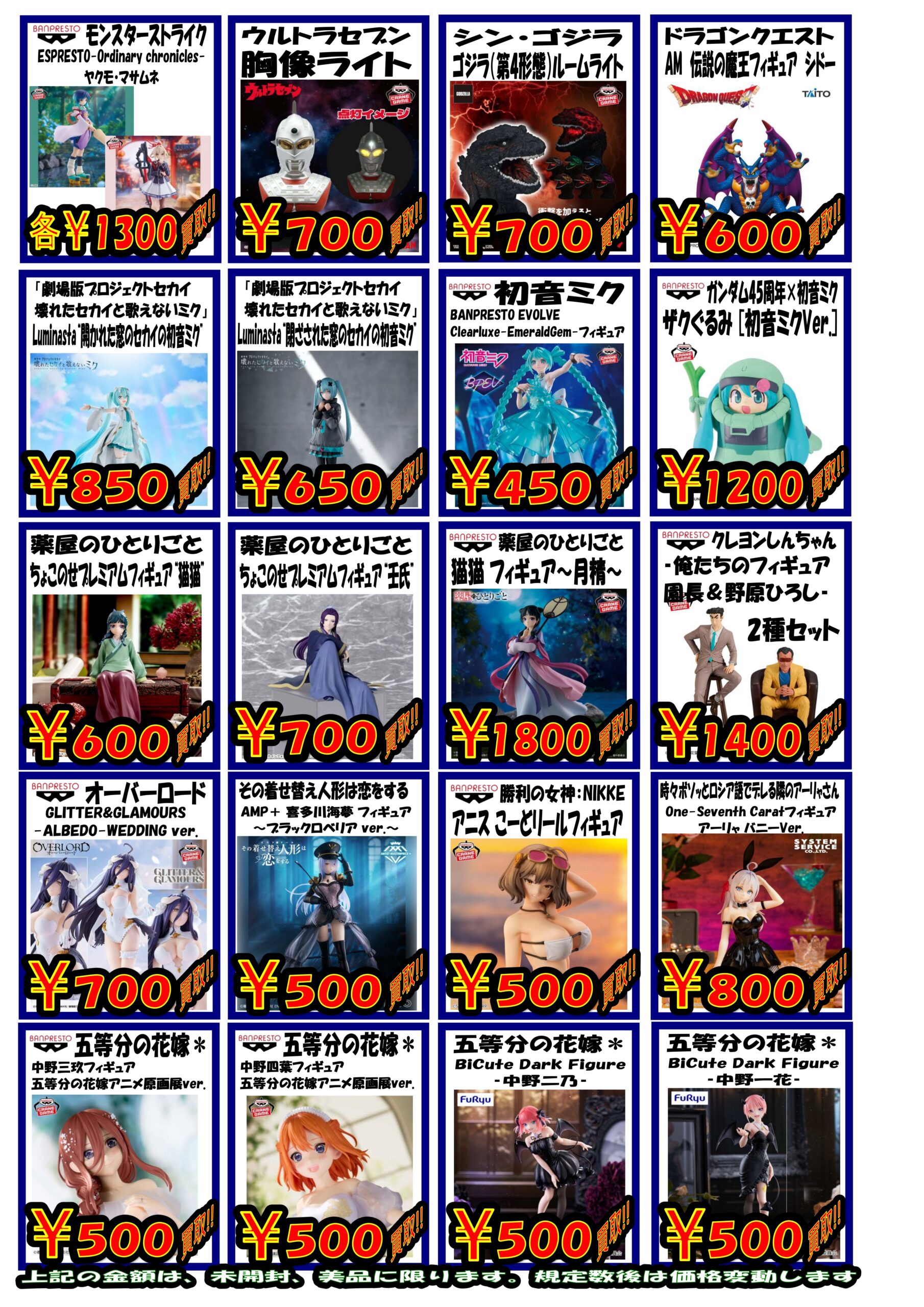 プライズフィギュア買取チラシ更新しました!