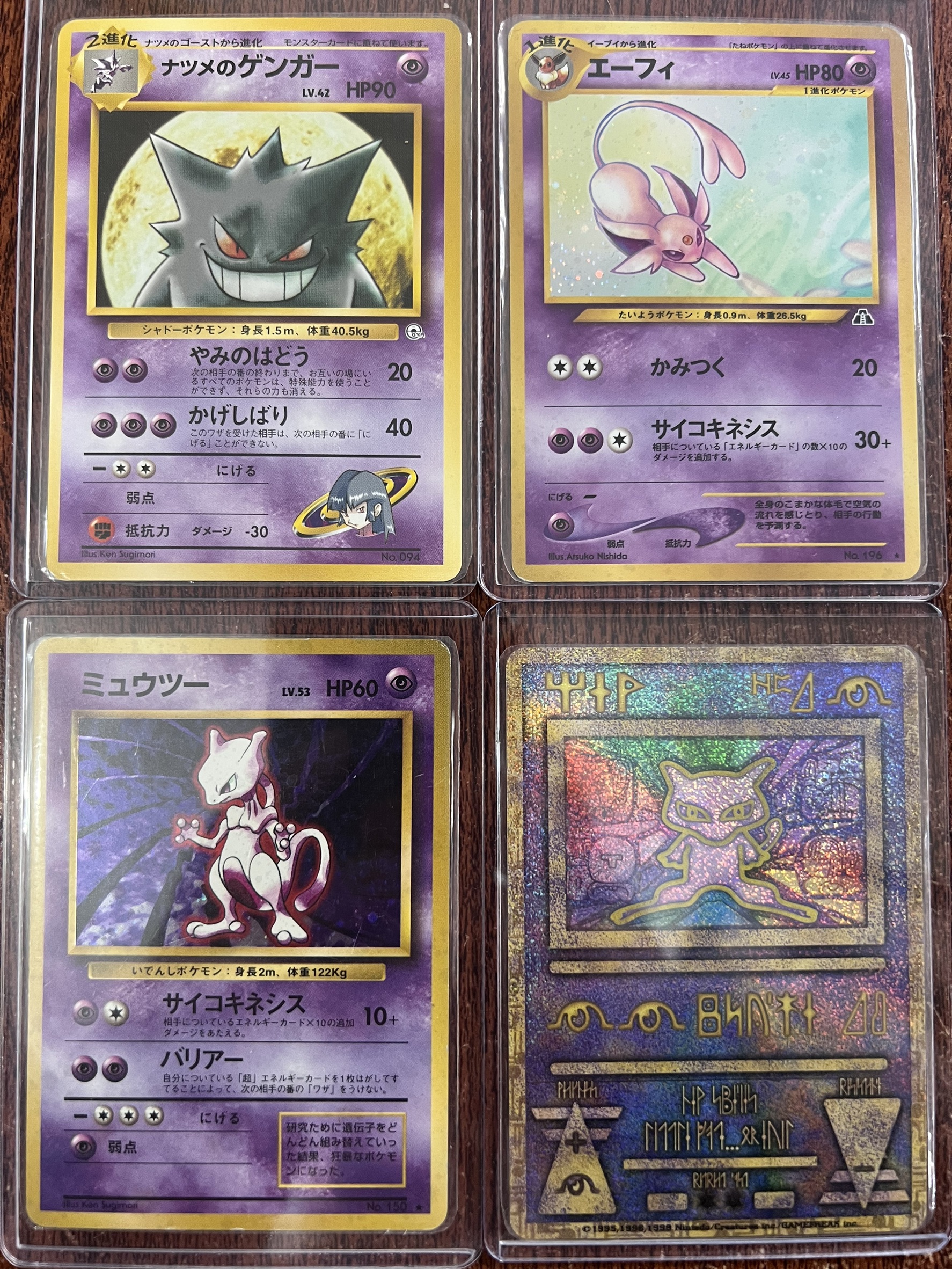 【ポケモンカード】旧裏のナツメのゲンガーやエーフィ、ミュウツー、古代ミュウ(エラー版)など買取させていただきました!