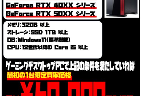 メモリの価格暴騰のため、ゲーミングPC買取価格UPしました!