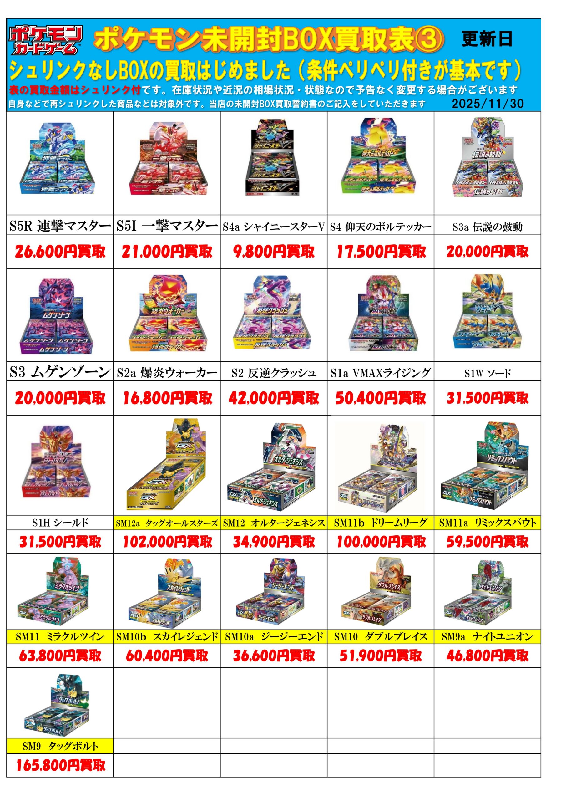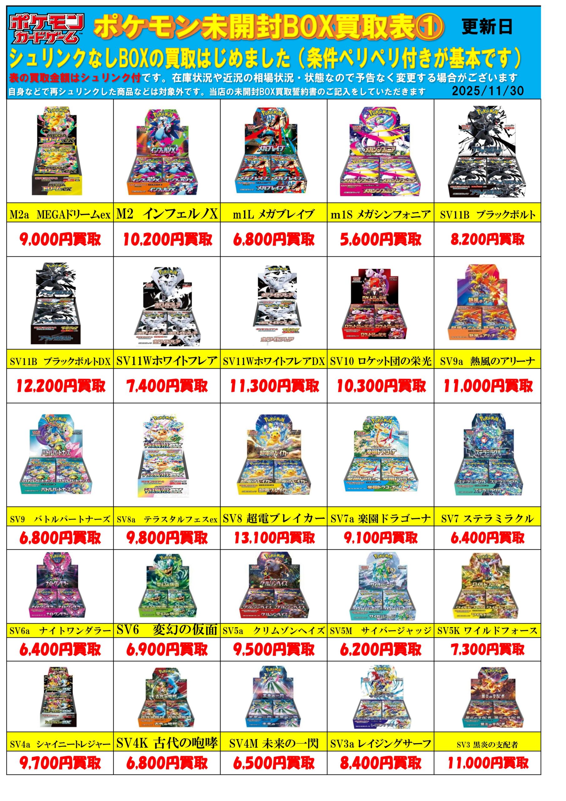 規定数に達したのでメガドリームex買取金額変更しております。その他BOXの買取チラシも更新しました!