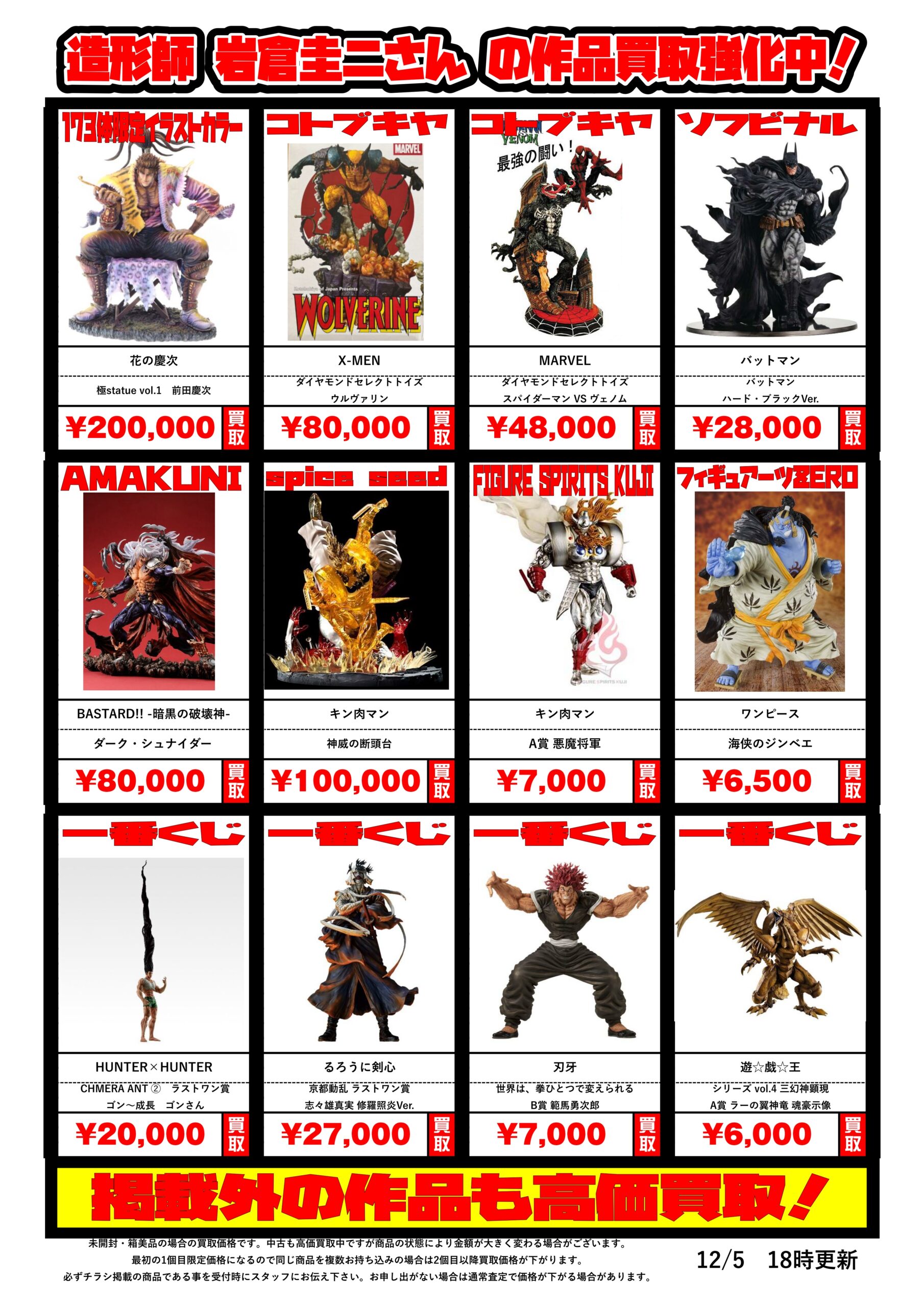 造形師 岩倉圭二さんの作品買取チラシ更新しました!
