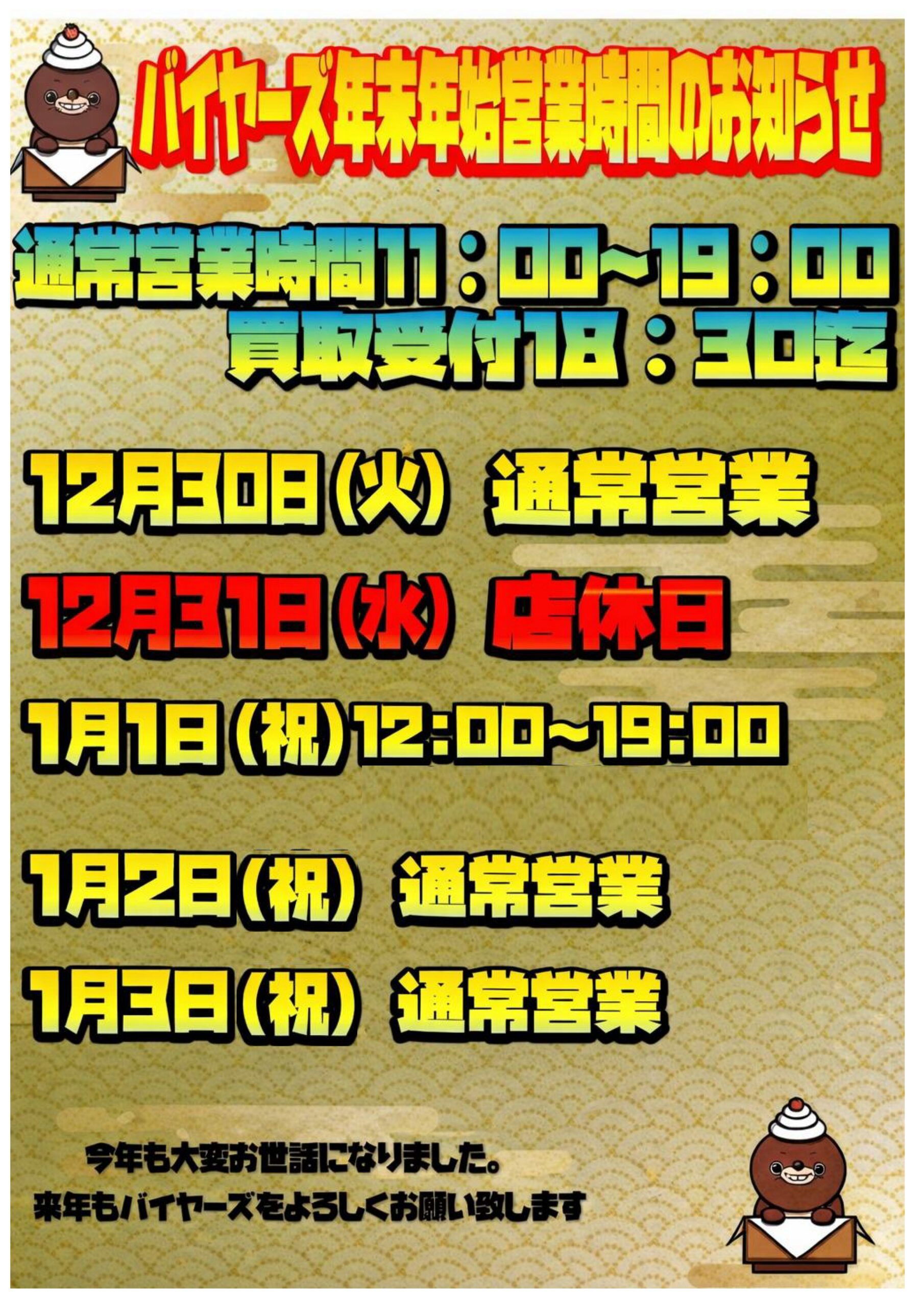 ☆バイヤーズ年末年始営業時間のお知らせ★