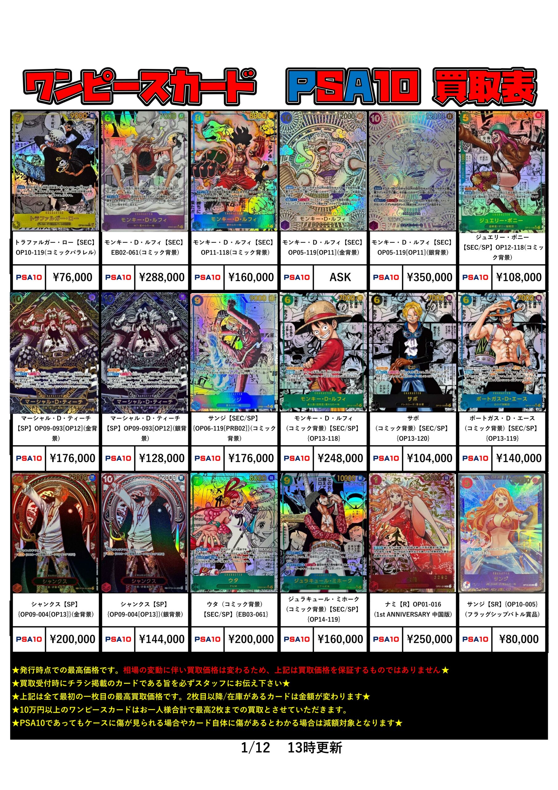 ワンピースカードPSA10買取チラシ更新しました!