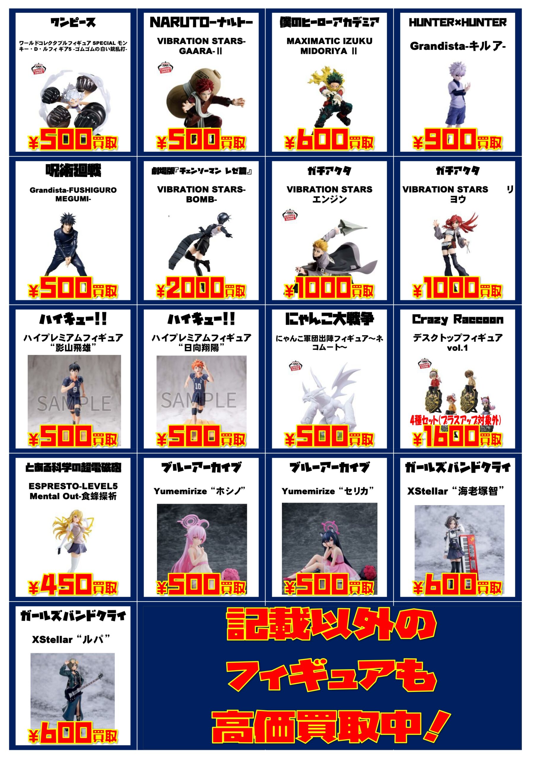 大量に買取させていただいたのでプライズフィギュア買取チラシ更新しました!